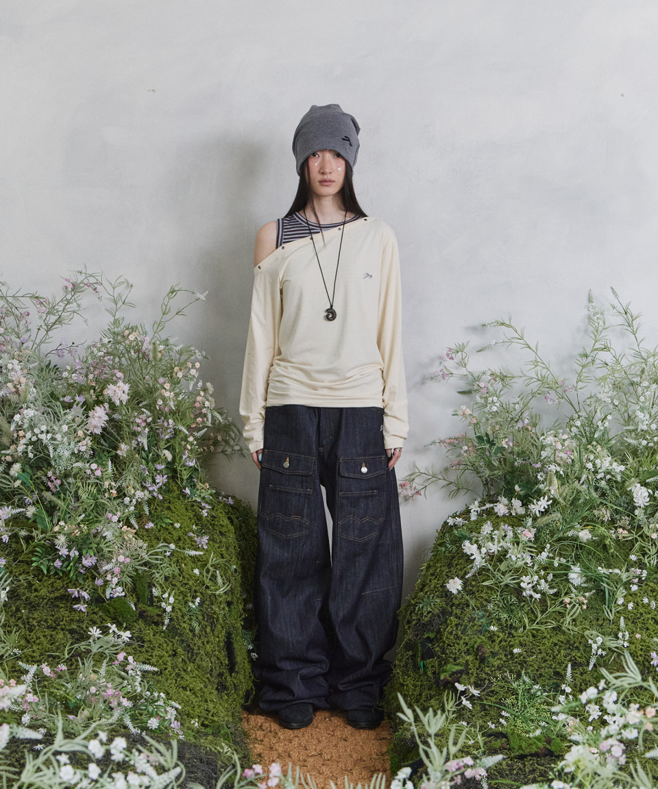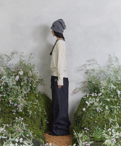 송이송이X탄산 로고 드레이프 비니 (차콜)