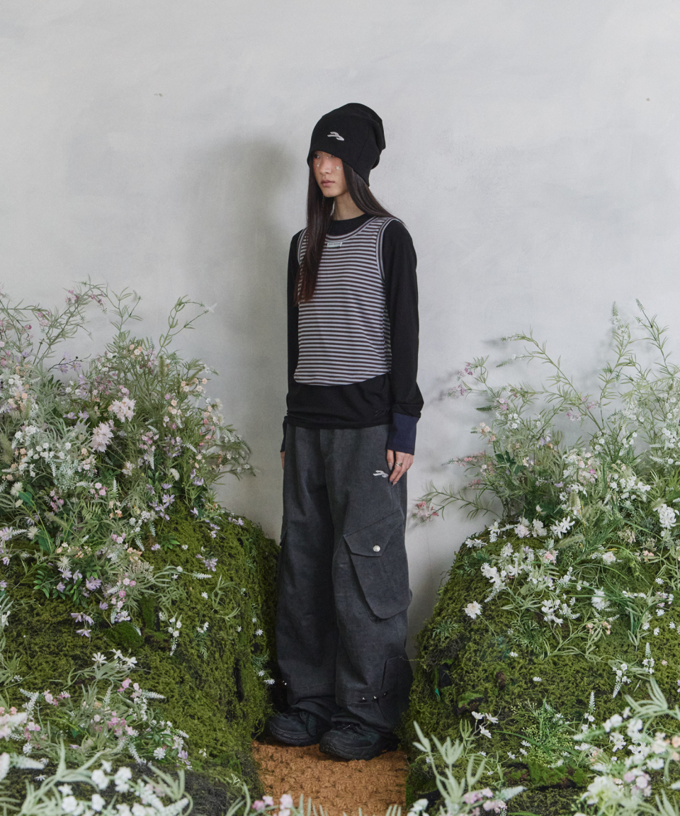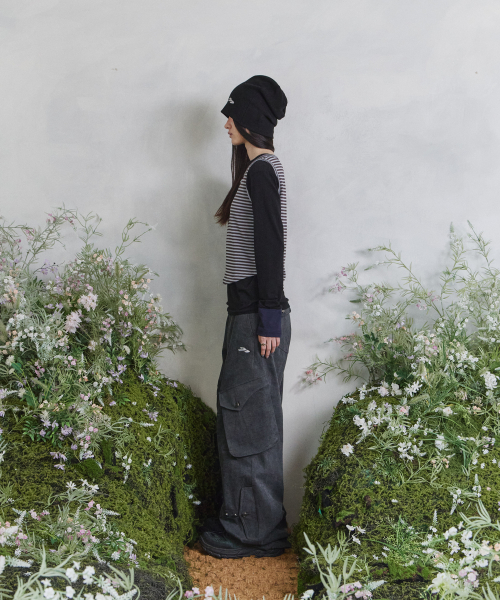 송이송이X탄산 로고 드레이프 비니 (차콜)
