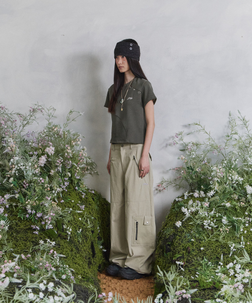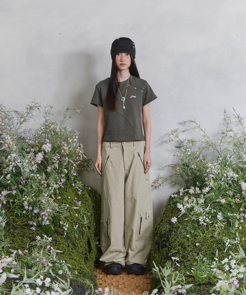 송이송이X탄산 절개 아일렛 티셔츠 (카키)