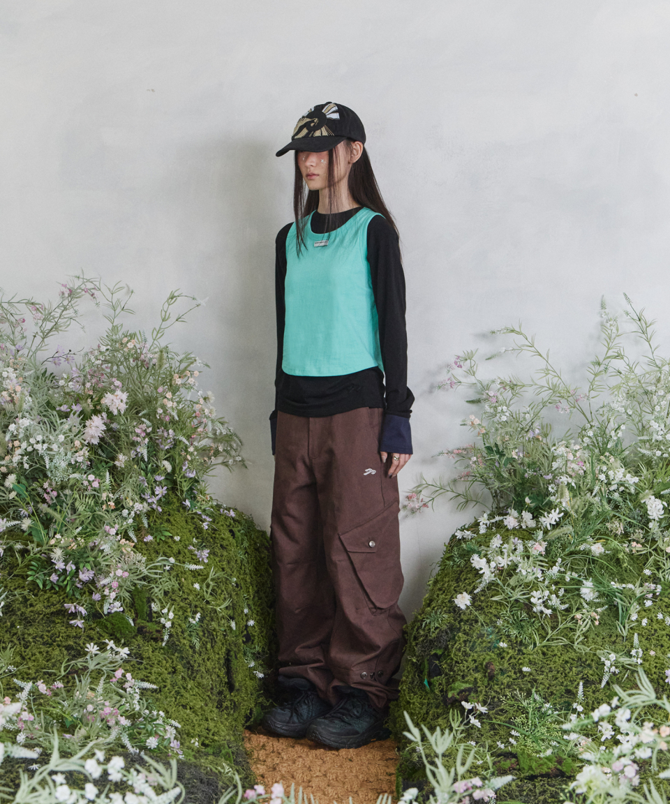 슬리브리스 전면 브랜드 라벨 디테일