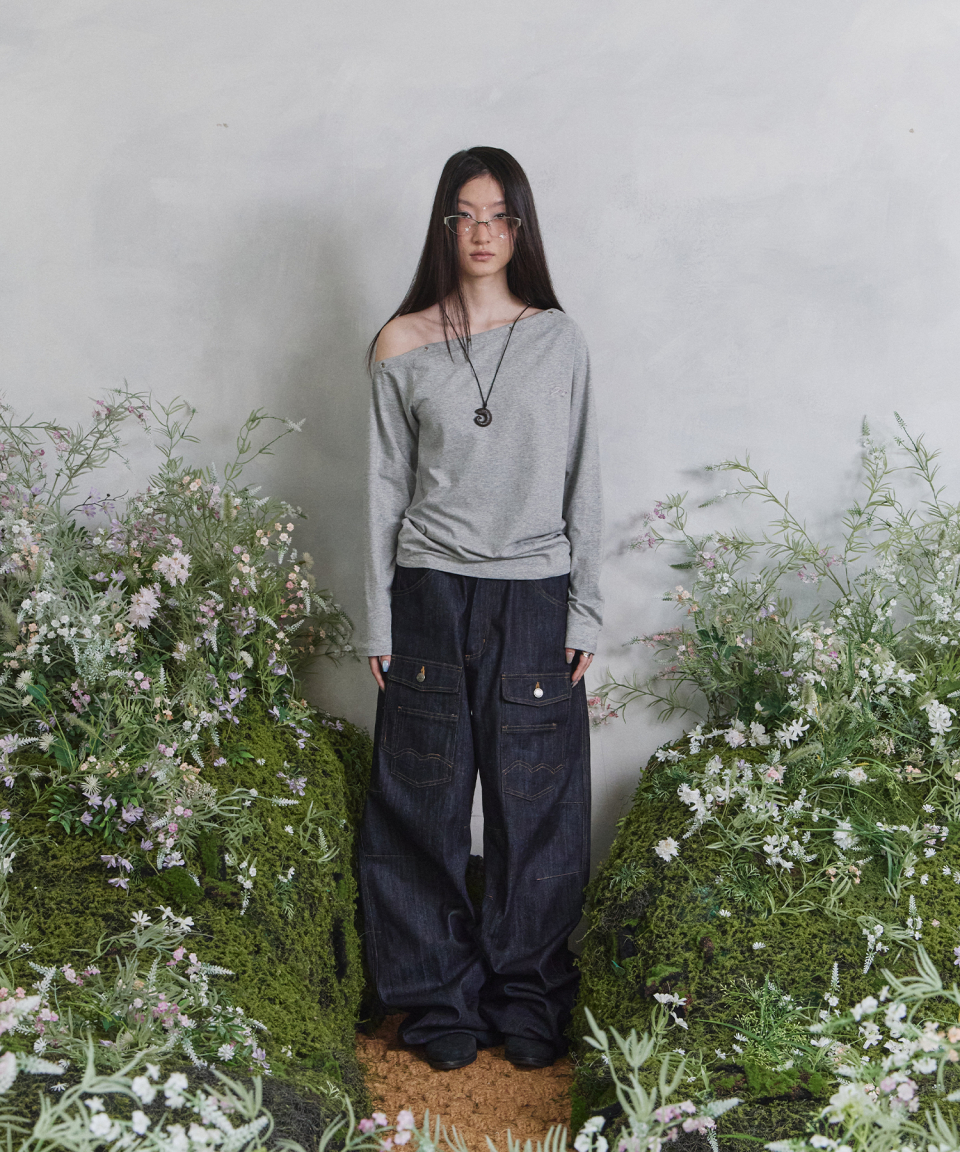 송이송이X탄산 원숄더 아일렛 롱슬리브 (그레이)