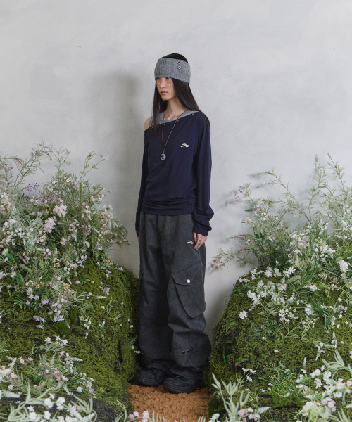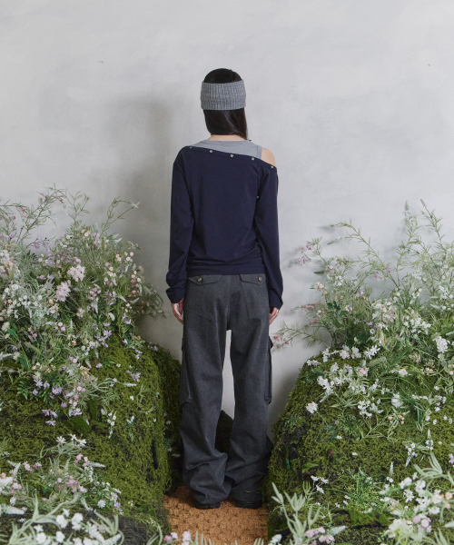 송이송이X탄산 원숄더 아일렛 롱슬리브 (네이비)