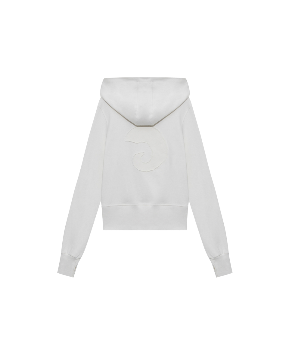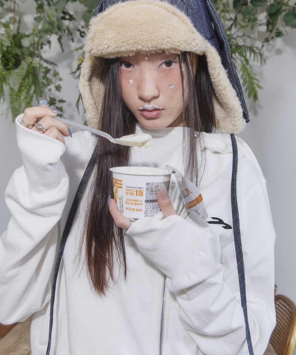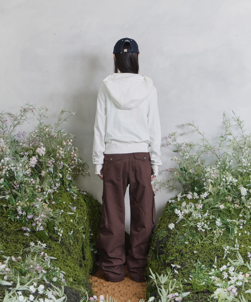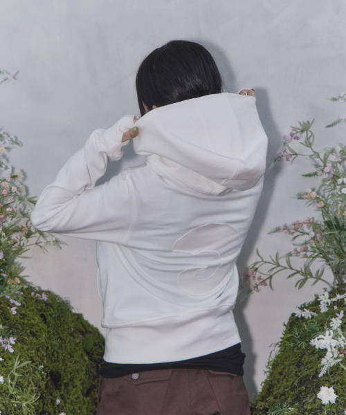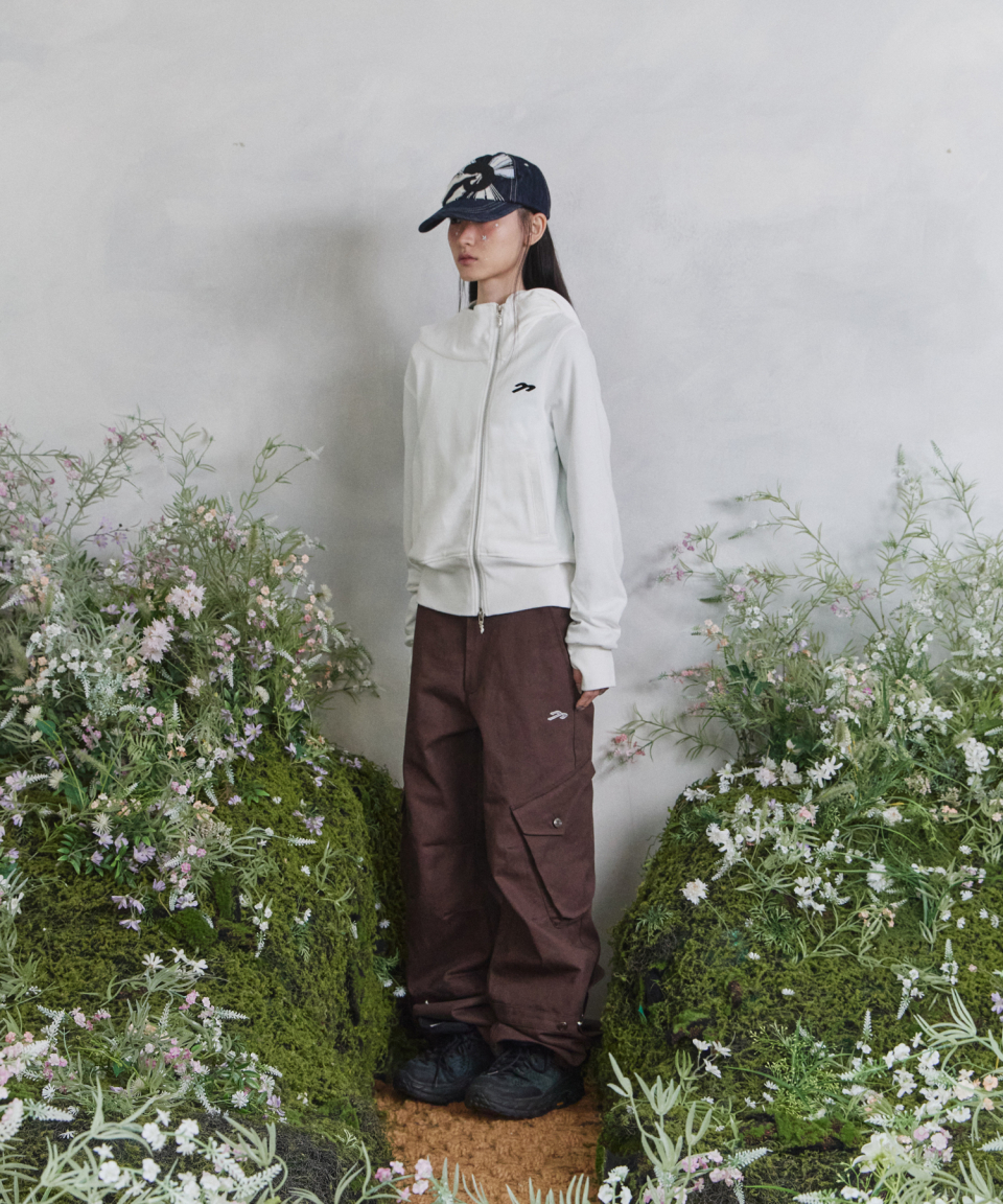 후면 아플리케 자수와 러프한 마감 디테일