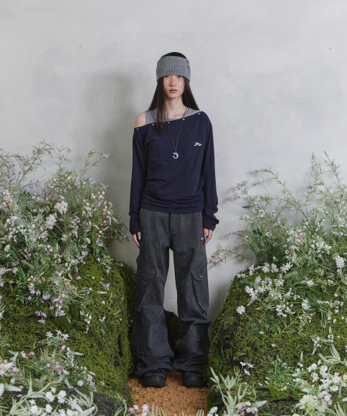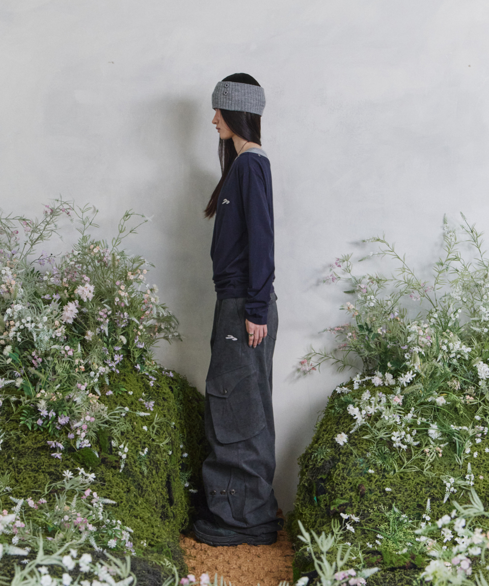 송이송이X탄산 코튼 와이드 카고 팬츠 (차콜)