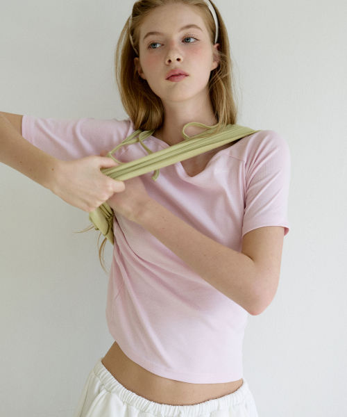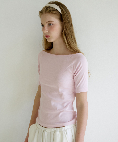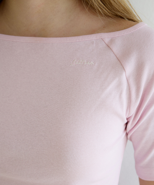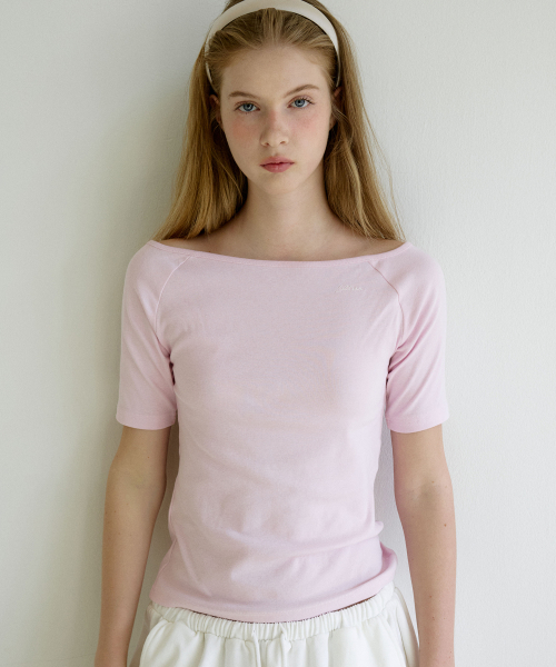 레터즈 세미 오프숄더 5부 티셔츠 ( 핑크 )