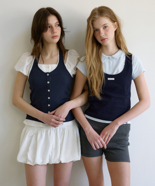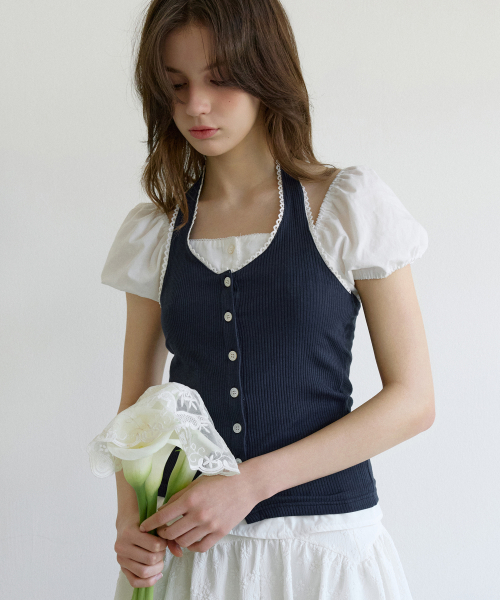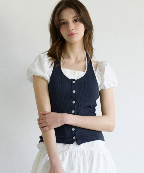 레터즈 레이스 버튼 홀터넥 탑 ( 네이비 )