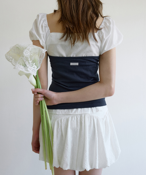 로지 레이스 퍼프 블라우스 ( 화이트 )