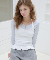 레터즈 프릴 라벨 홀터넥 탑 ( 화이트 )