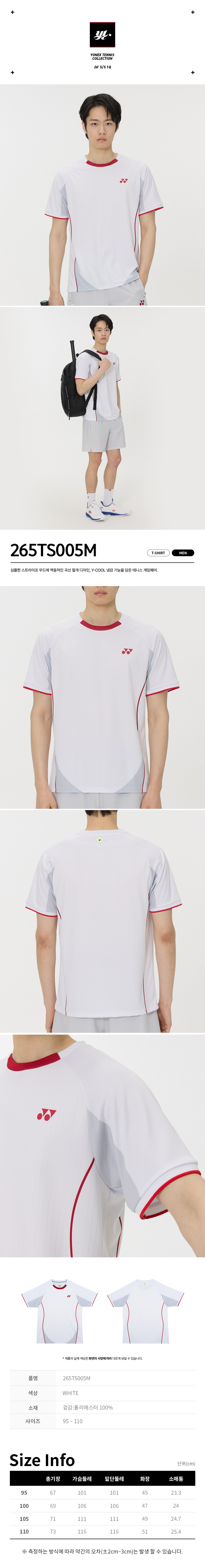 265TS014U 화이트 남녀공용 브이코어 라켓 무드 캐주얼 반팔 티셔츠