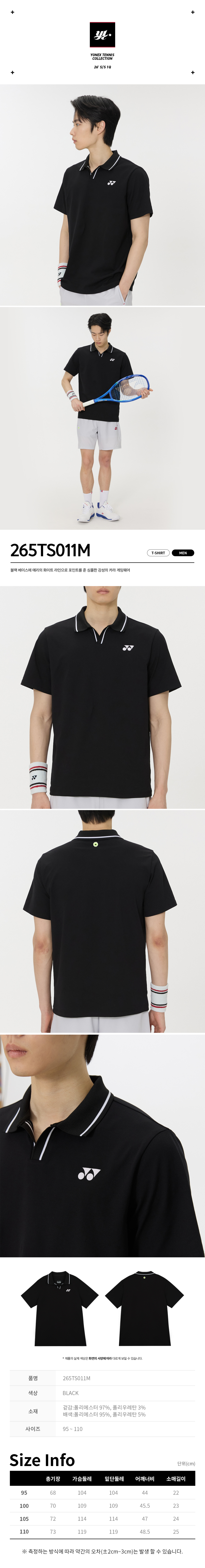 265TS011M 블랙 남성용 오픈 카라 테니스 게임웨어