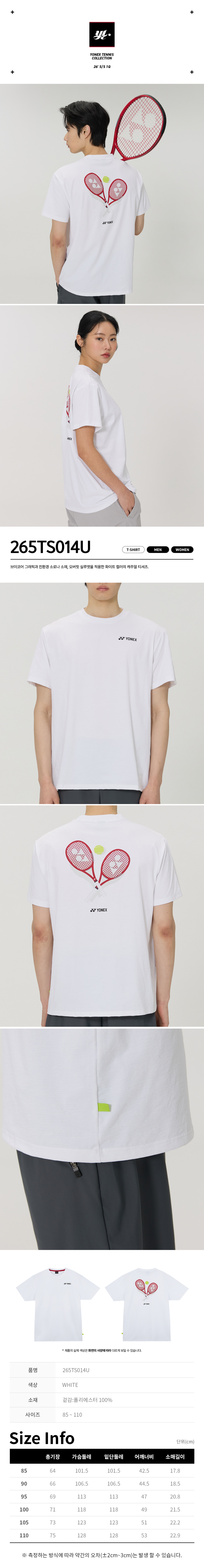 265TS014U 화이트 남녀공용 브이코어 라켓 무드 캐주얼 반팔 티셔츠