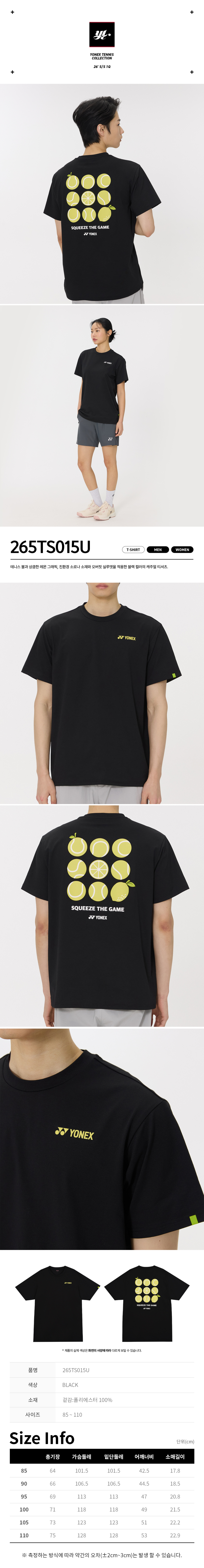 265TS014U 화이트 남녀공용 브이코어 라켓 무드 캐주얼 반팔 티셔츠