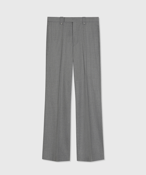 타일레 시그니처 아이템, 60년대 카나비 스트리트 룩에서 영감을 얻은 울 트라우저 입니다. 특유의 조직으로 부드러운 터치와 회복이 우수한 고밀도 파인 울 혼방 패브릭을 사용했습니다. 밑단으로 넓어지는 와이드 플레어 실루엣과 벨트 루프에 더해진 콘초 스터드가 세련된 대비를 연출합니다. 내부 마감까지 테일러드 메이킹으로 완성한 하이 퀄리티 클래식 아이템입니다.