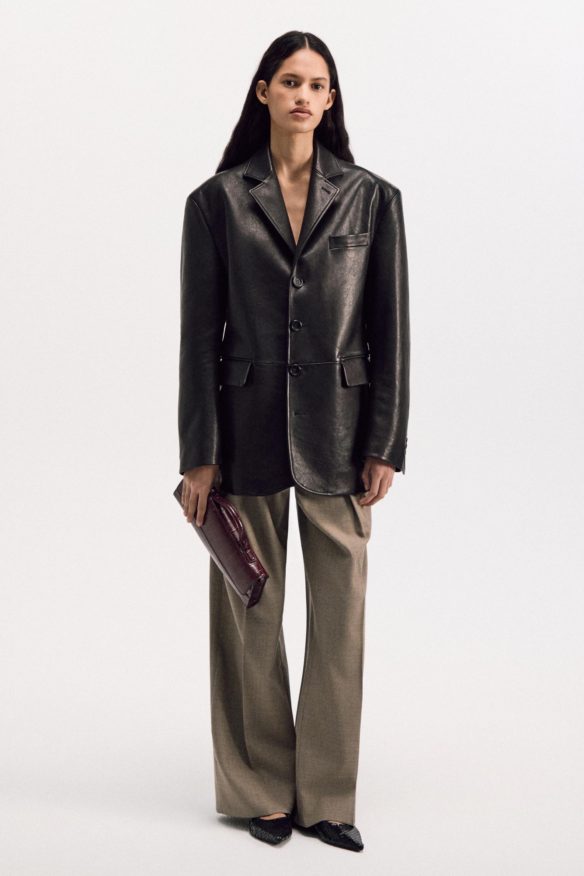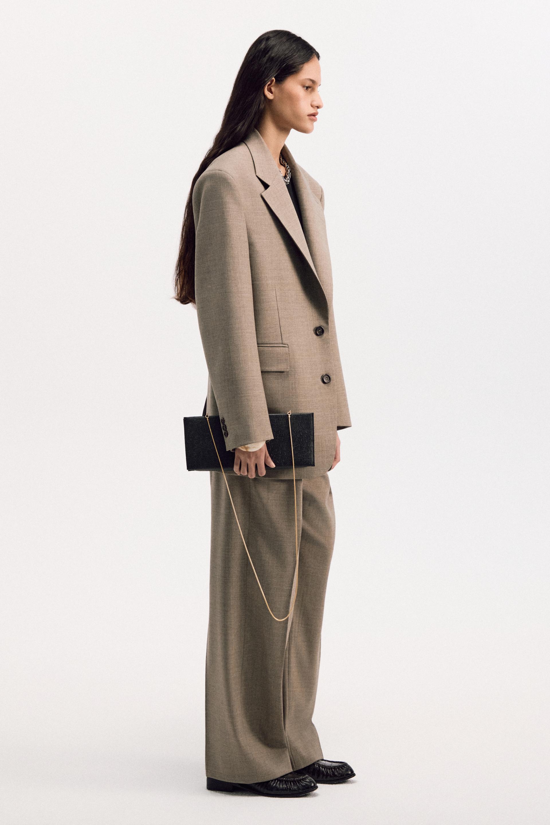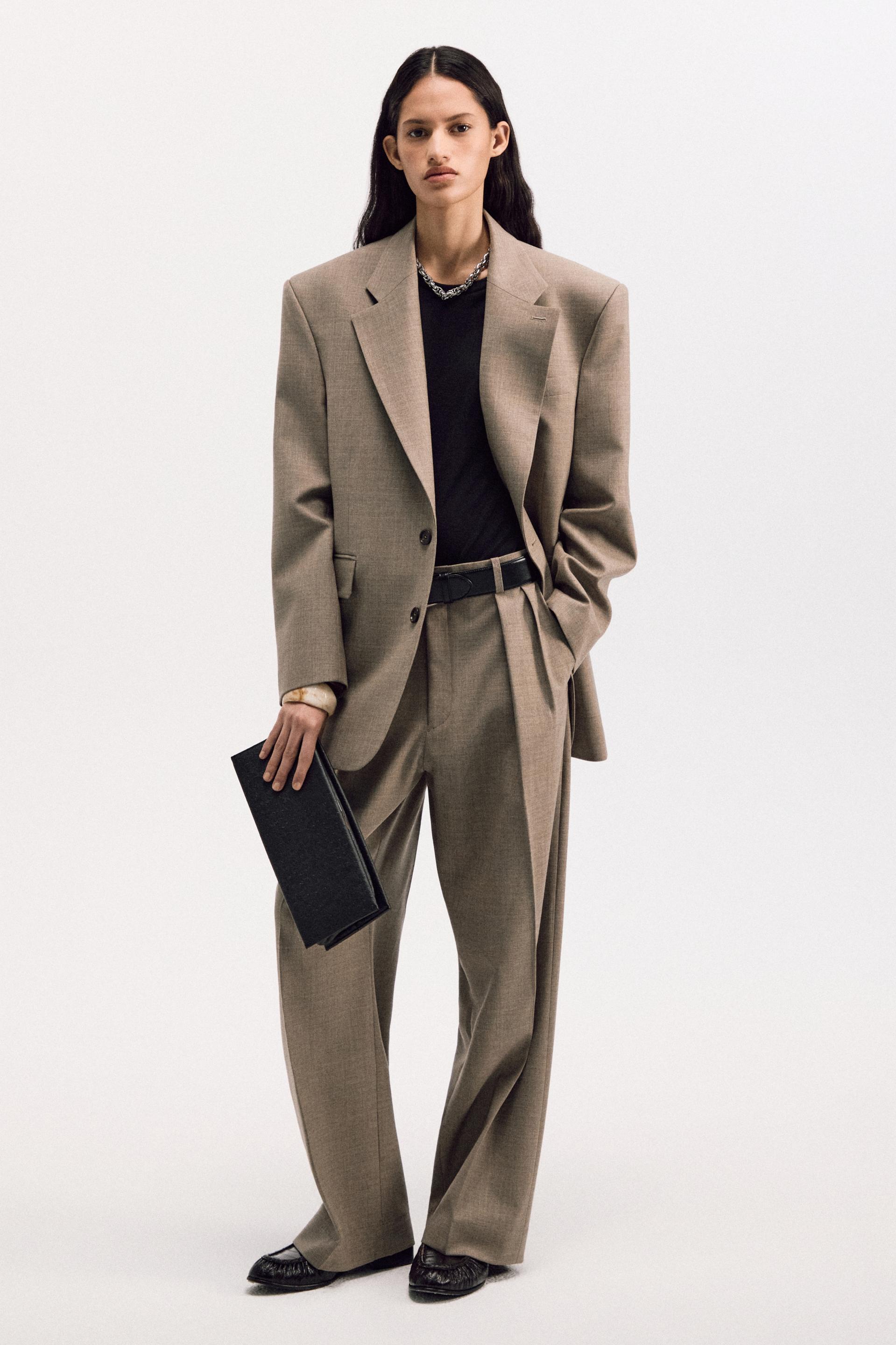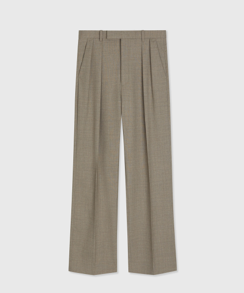 턱스 트라우저는 80년대 소프트 테일러링 특유의 여유롭고 우아한 실루엣을 현대적인 감각으로 재해석한 아이템입니다. 하이라이즈 패턴과 풍성한 와이드 레그 실루엣은 정돈된 섬세함을 연출합니다. 전면의 더블 턱 디자인이 입체적인 구조를 더하며, 테일러링 기반의 정교한 메이킹과 세밀한 파인 울 텍스처가 움직임에 따라 유연하게 흐르는 균형을 완성합니다.