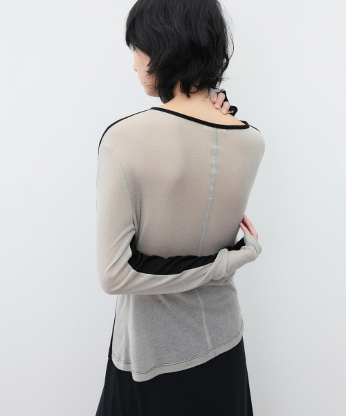 (우먼)메리노 울 투 페이스 롱 슬리브 멜란지 그레이