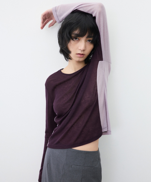 (우먼)메리노 울 투 페이스 롱 슬리브 플럼