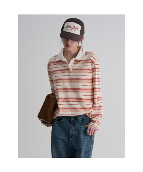 스트라이프 칼라 디자인의 긴소매 티셔츠입니다. 여유있는 실루엣으로 편안한 착용감과 캐주얼한 스타일로 데일리룩에 활용하기 좋습니다. 데님하의와 매치하면 더욱 매력적인 아이템입니다.