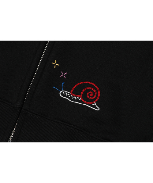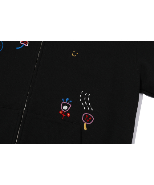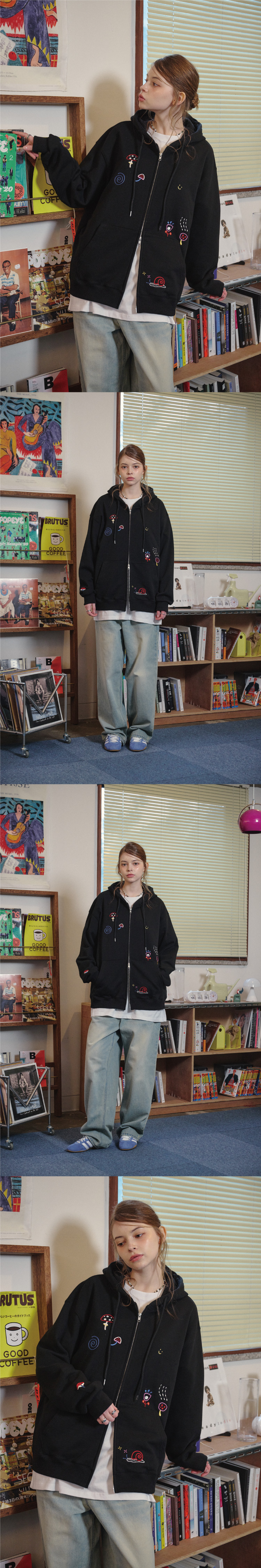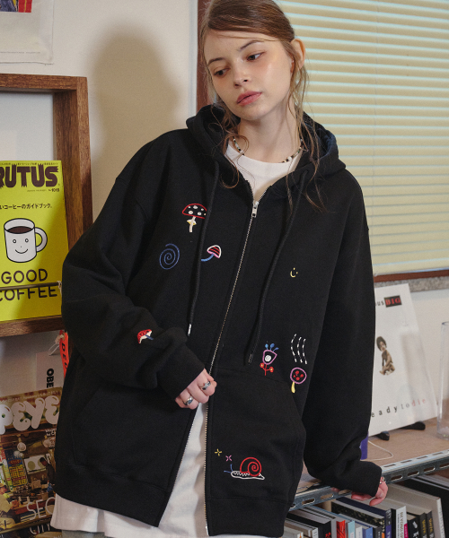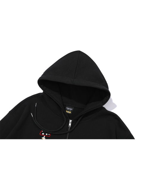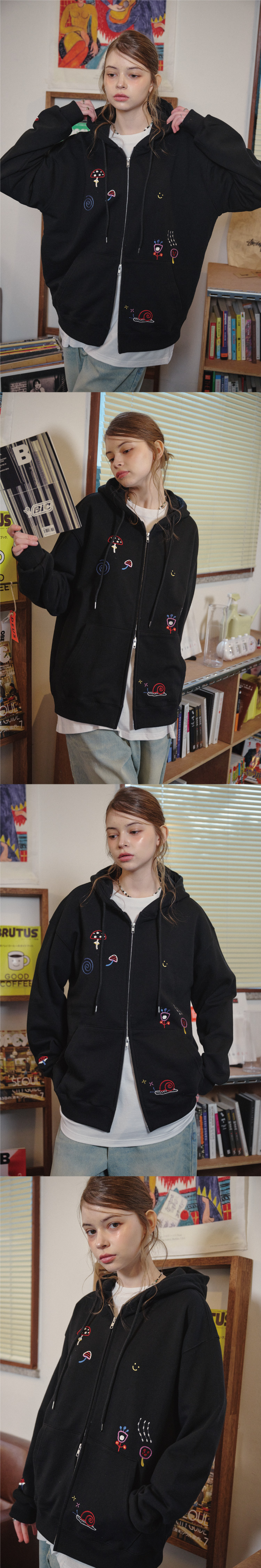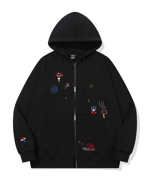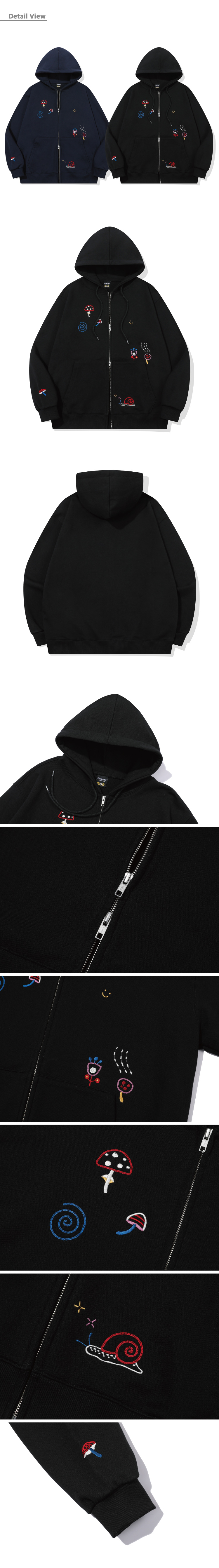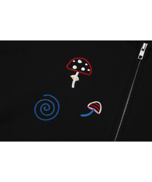 [2-WAY] 머쉬룸 스티치 후드 집업 블랙