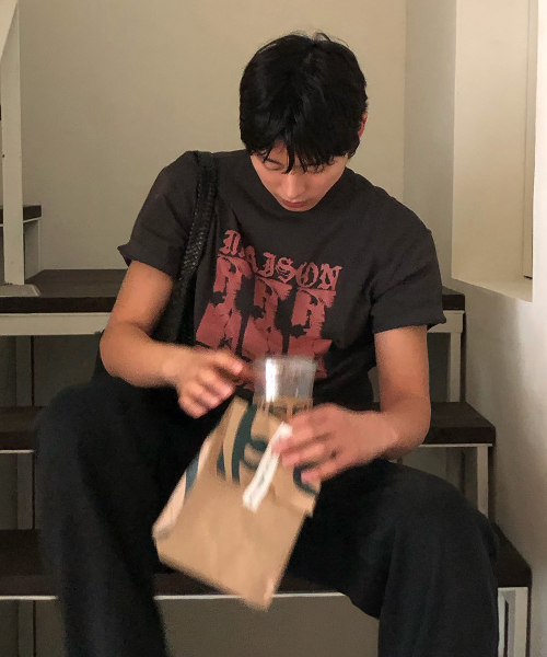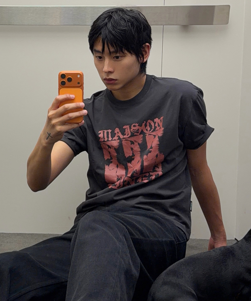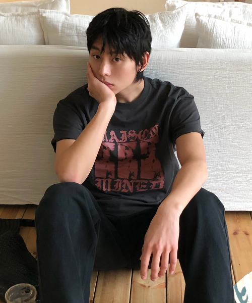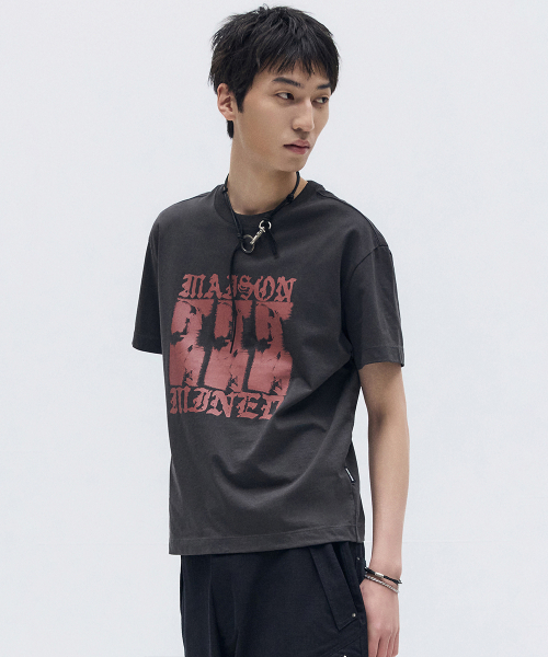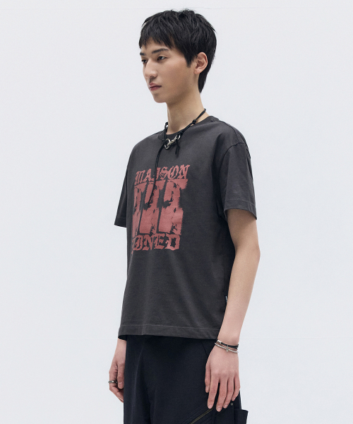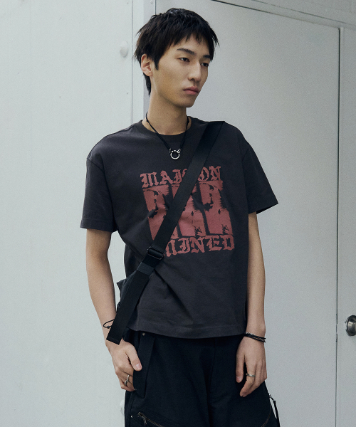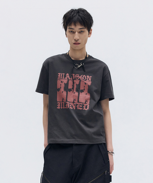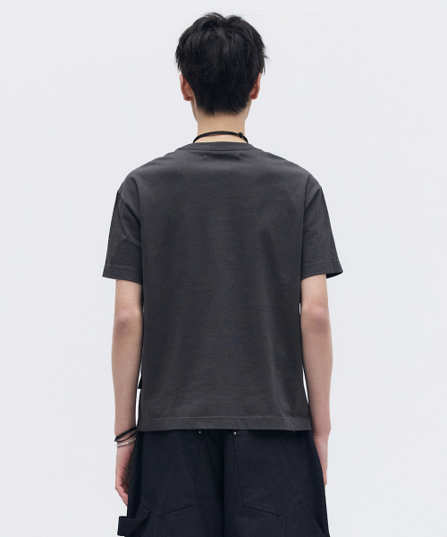 [우난 PICK] MP3 GRAPHIC LAYERED HALF T MELANGE GRAY