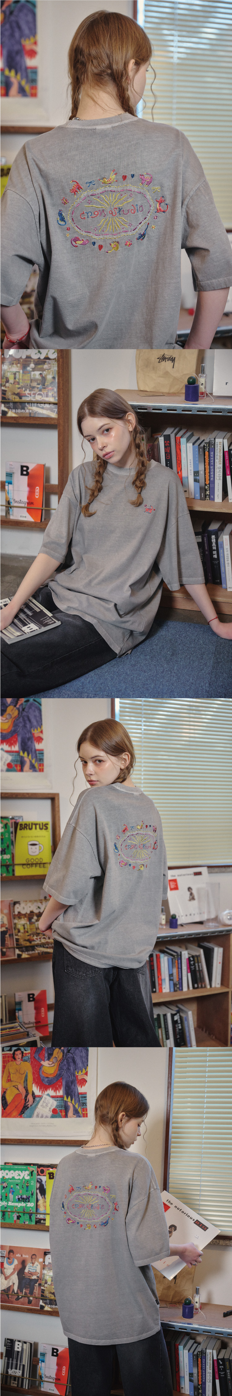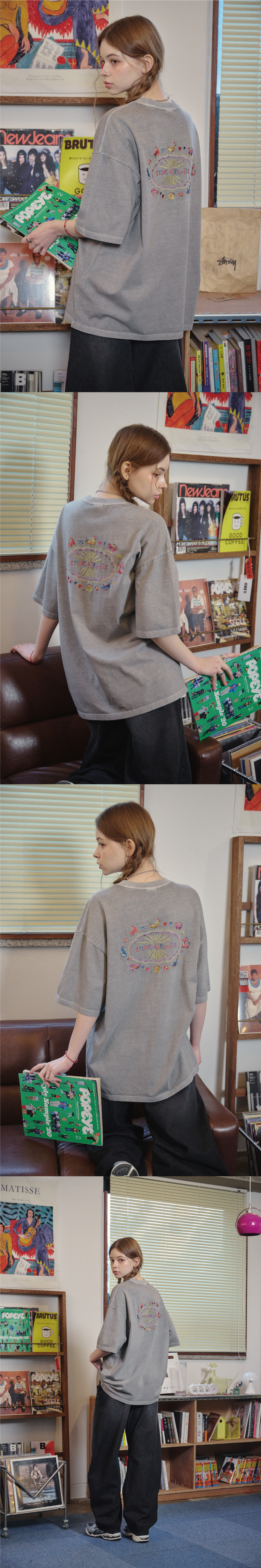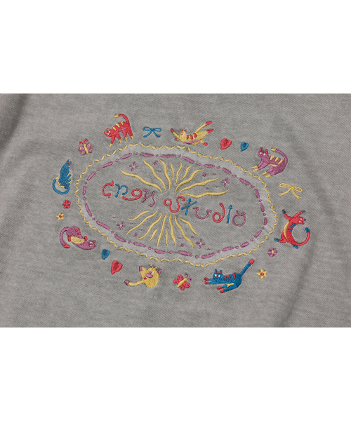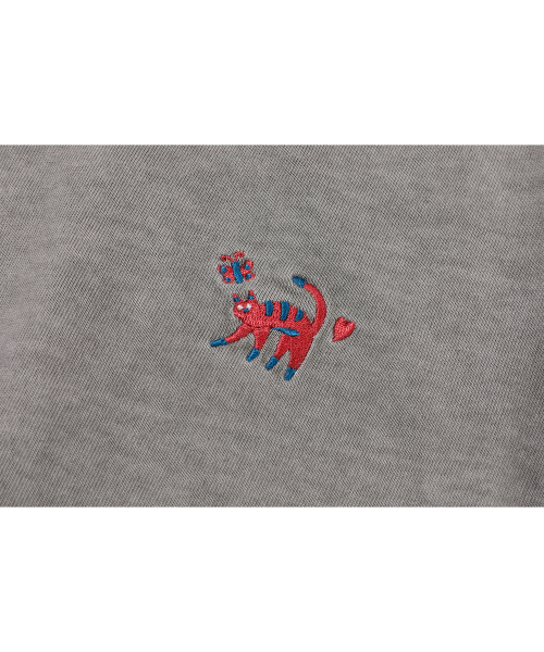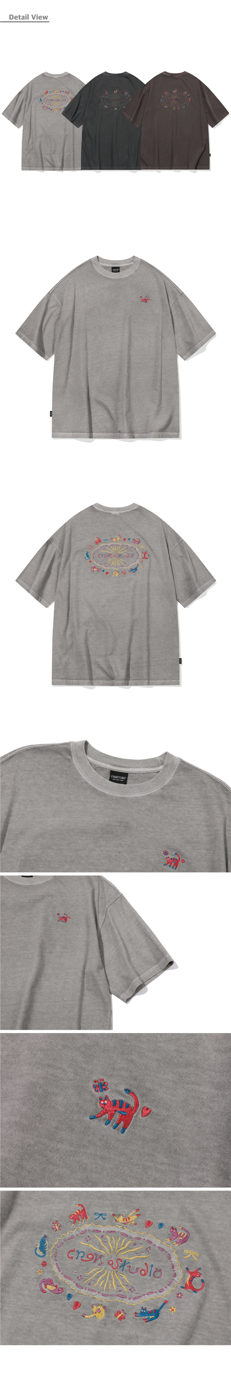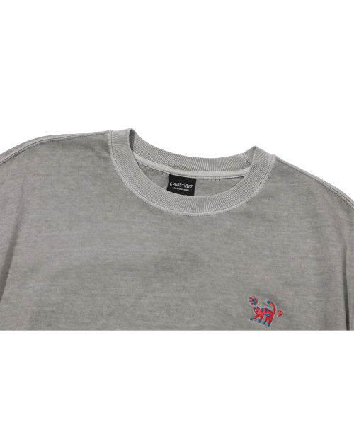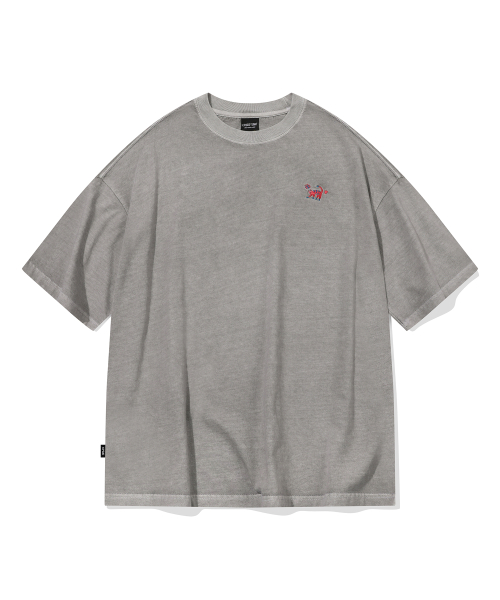 캣 스티치 피그먼트 반팔티 고스트그레이