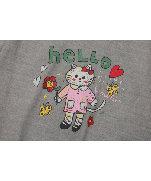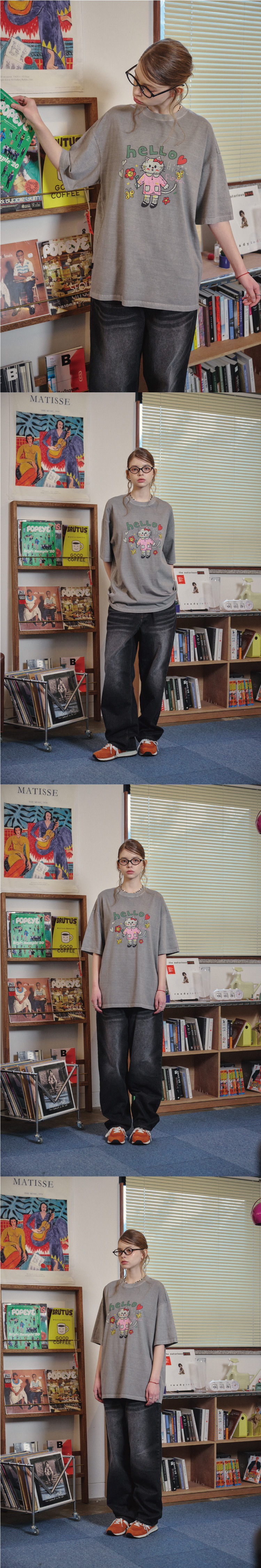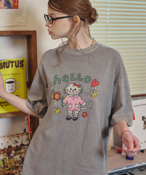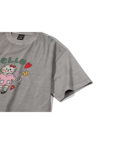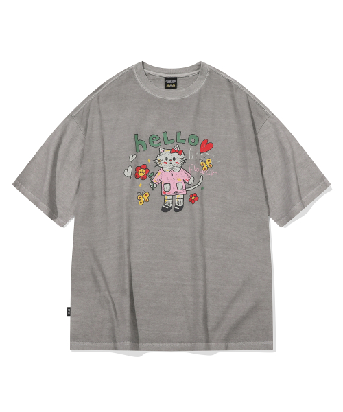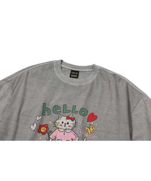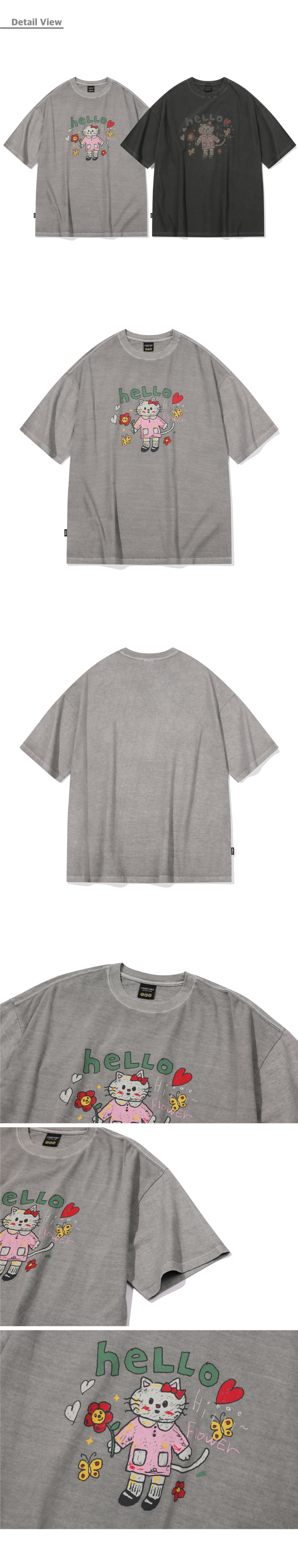 HELLO FLOWER 피그먼트 반팔티 고스트그레이