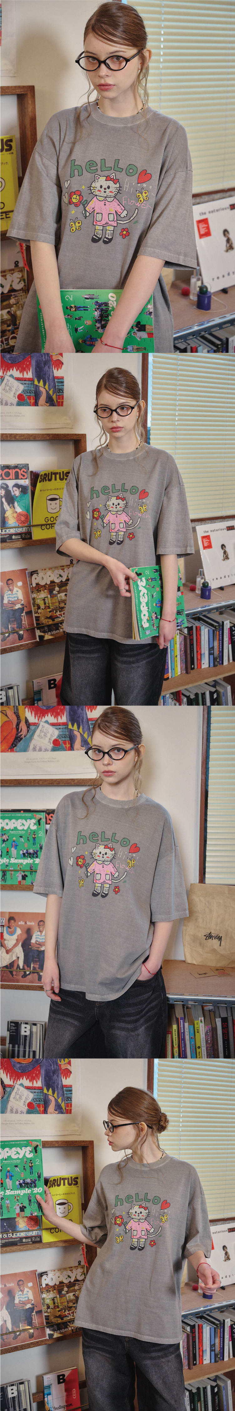 캣 스티치 피그먼트 반팔티 고스트그레이