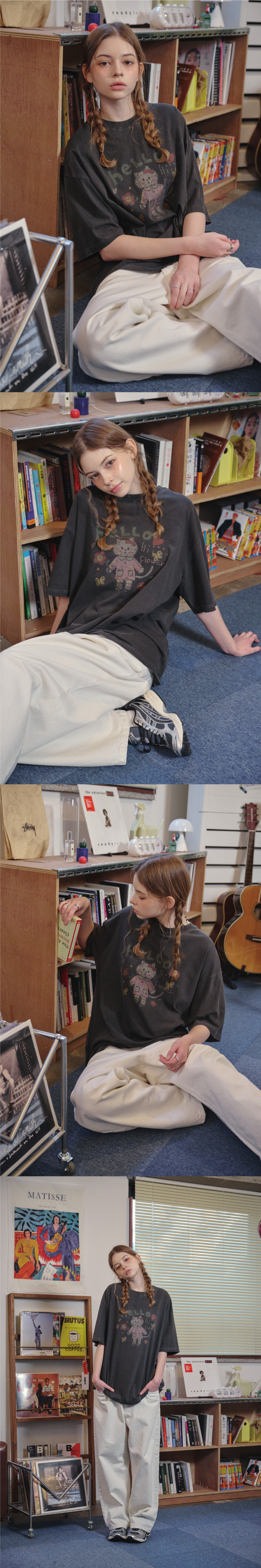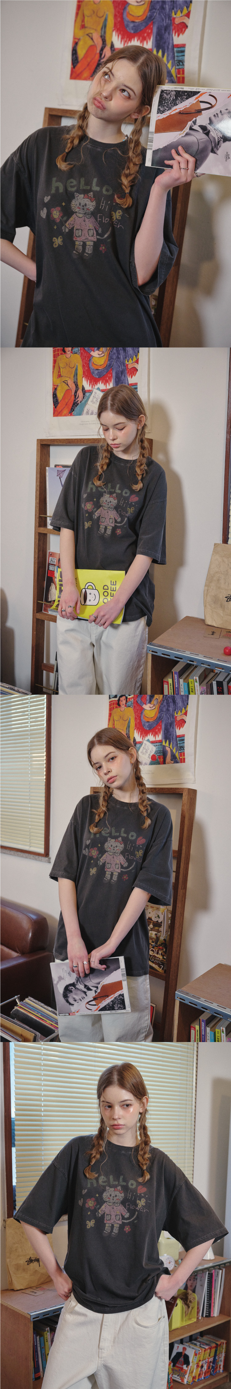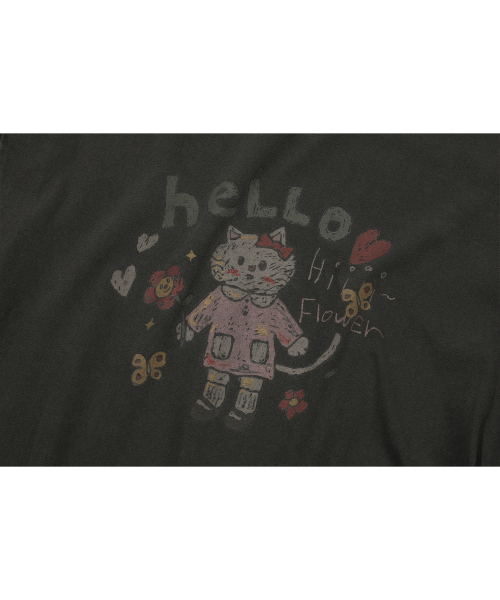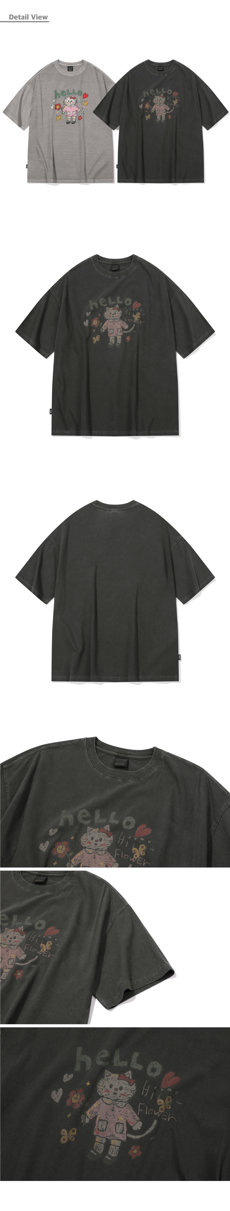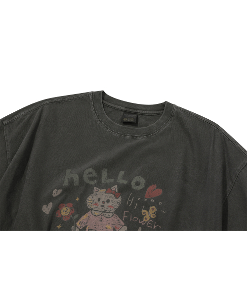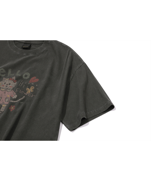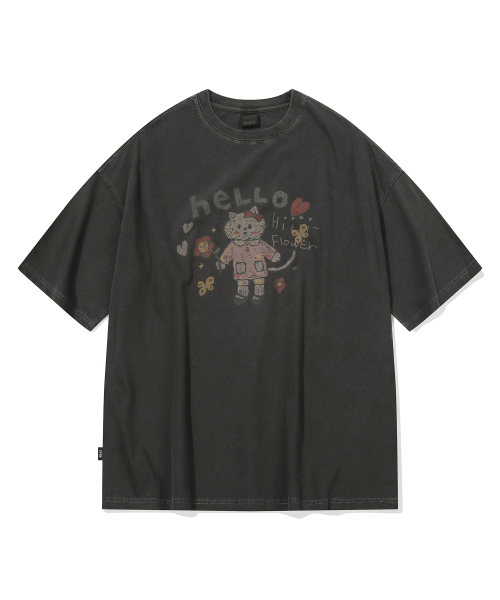 HELLO FLOWER 피그먼트 반팔티 스모크블랙