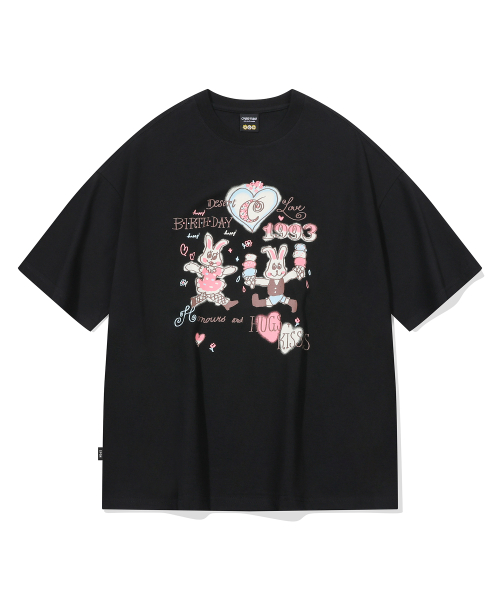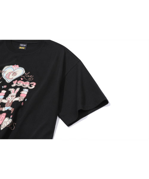 HELLO FLOWER 피그먼트 반팔티 스모크블랙