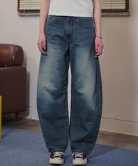 우먼 와이드 다트 데님 팬츠 인디고블루