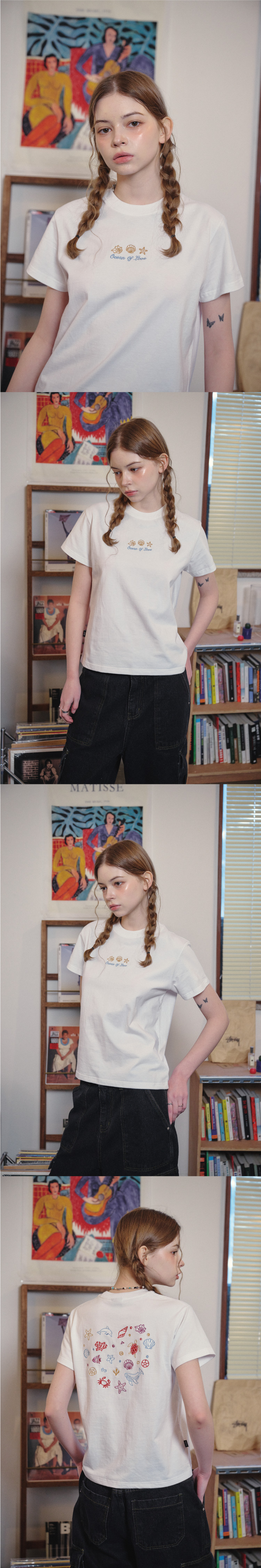 오션 러브 크롭 반팔티 화이트