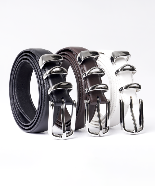 트리플 메탈 루프 레더 벨트 (소가죽/화이트)