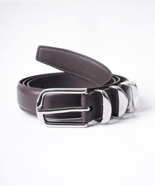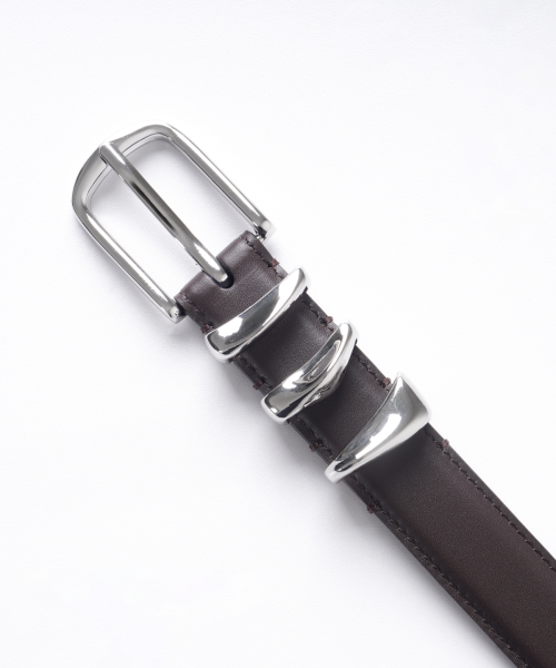 트리플 메탈 루프 레더 벨트 (소가죽/다크브라운)