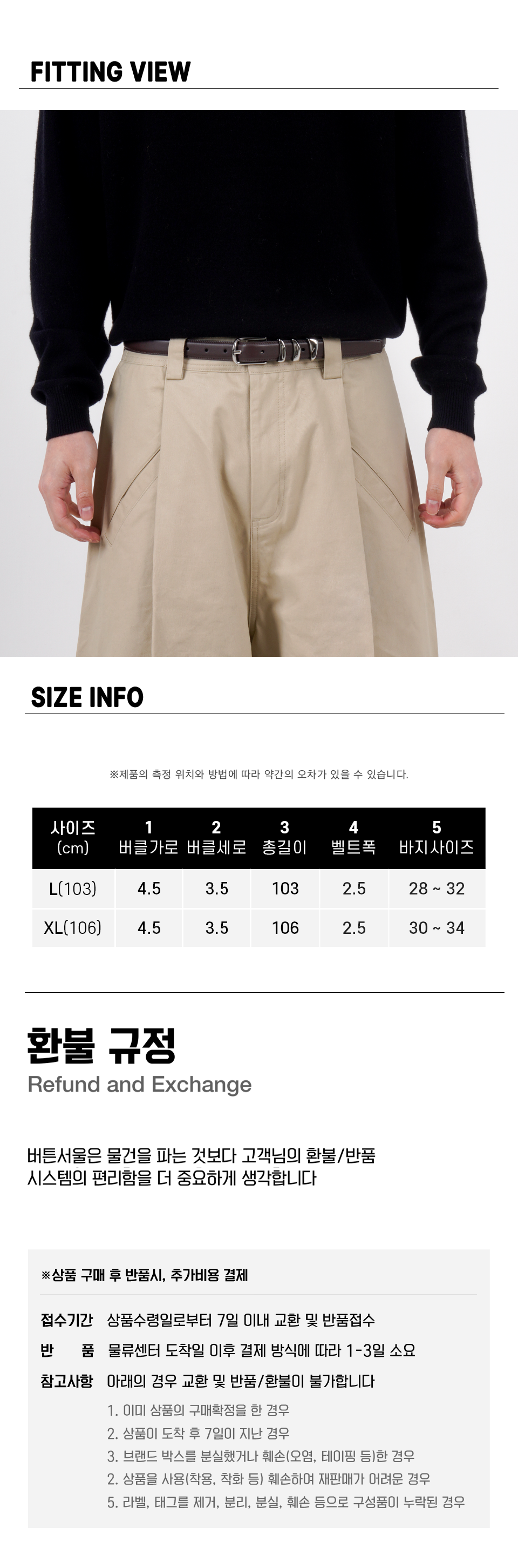 라운드 버클 웨스턴 레더 벨트 (소가죽/브라운)