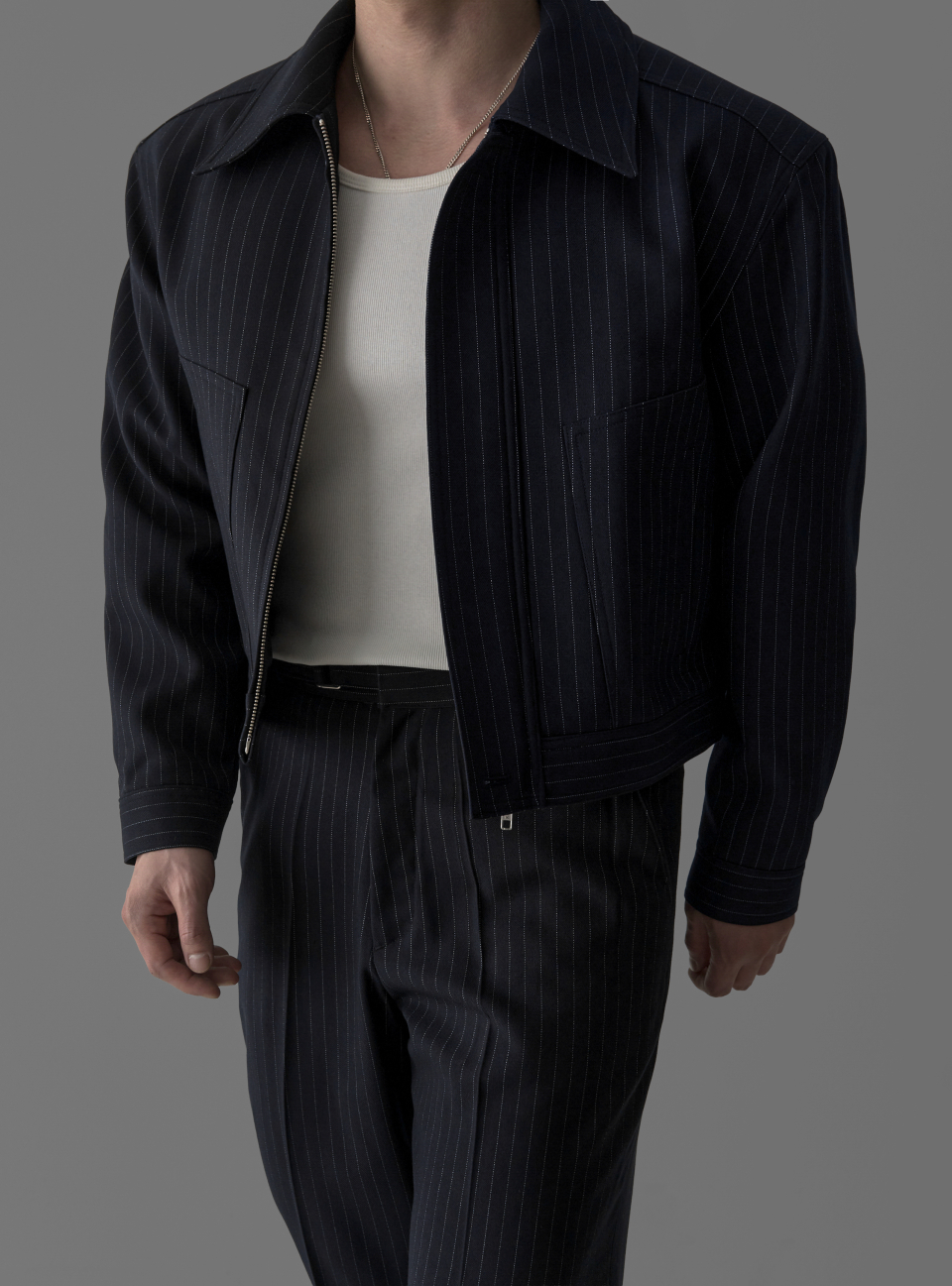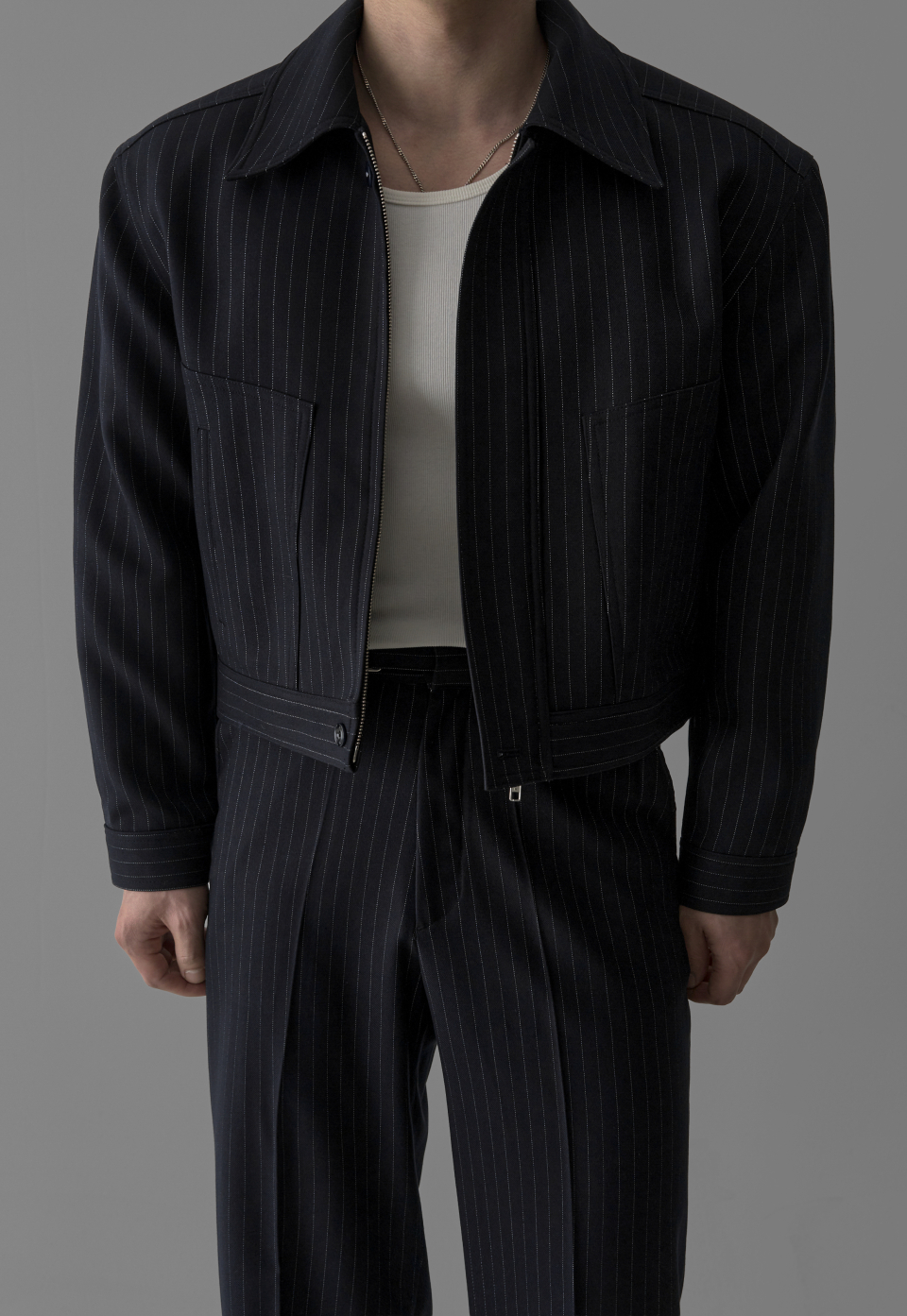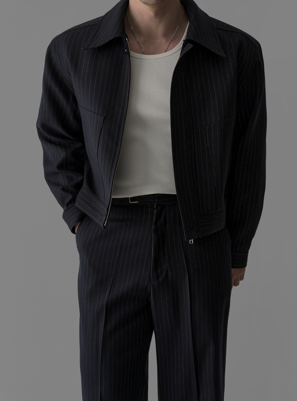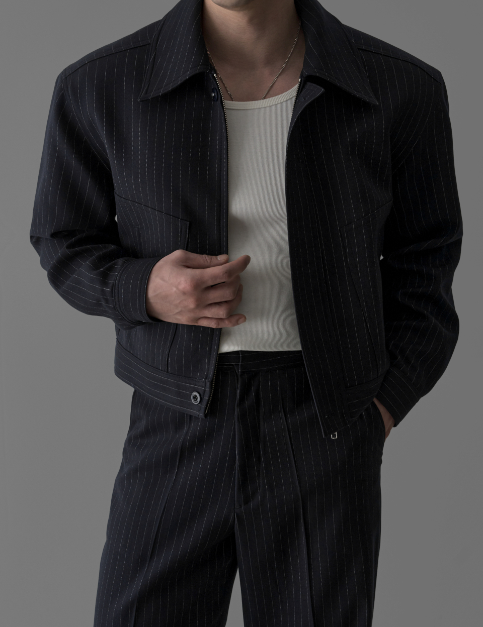- 고급스러운 TR 블렌드 원단으로 완성된 자켓