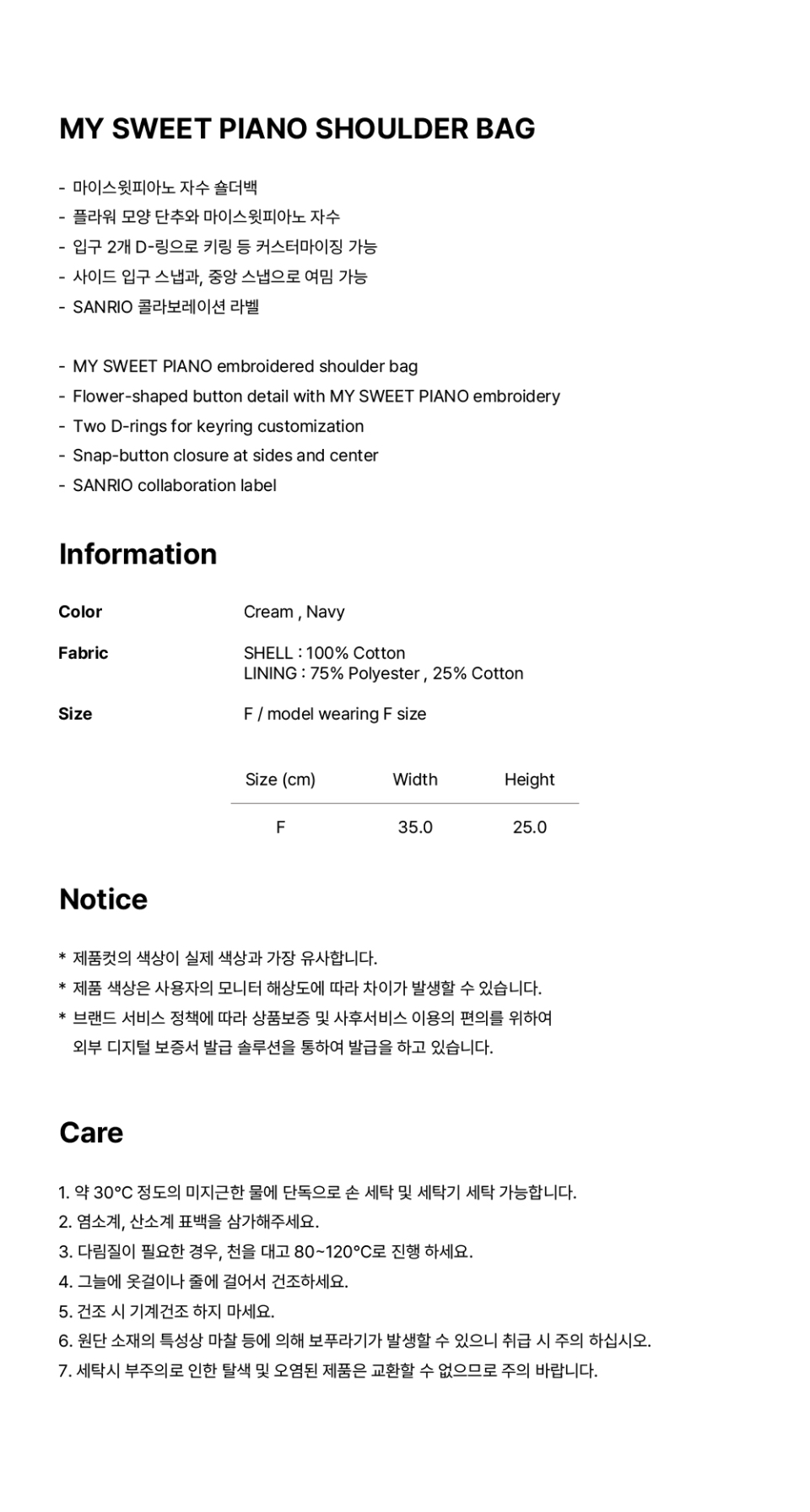 MY SWEET PIANO SHOULDER BAG [CREAM]