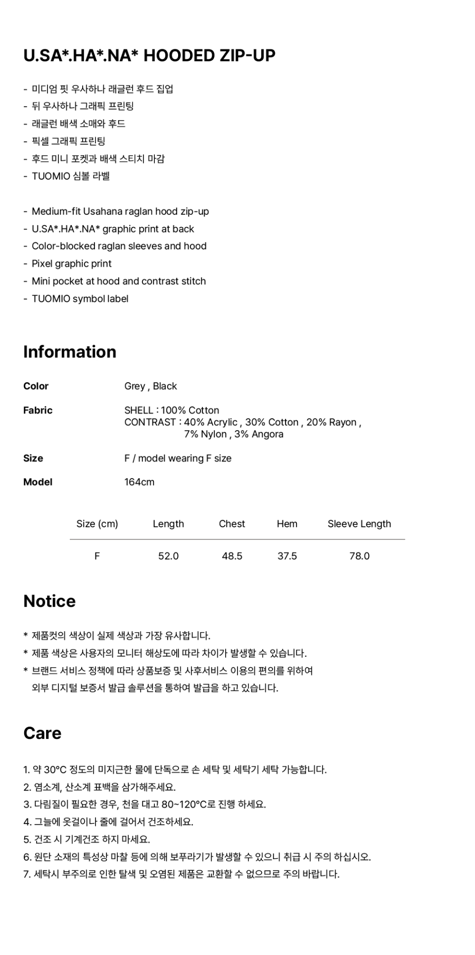 USAHANA HOODED ZIP-UP [GREY]