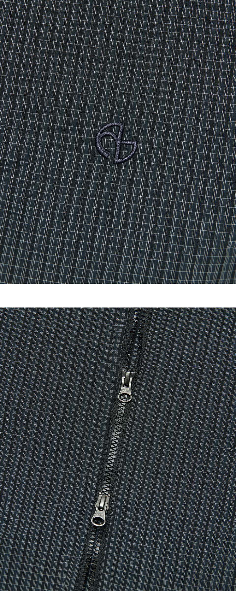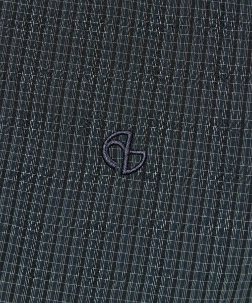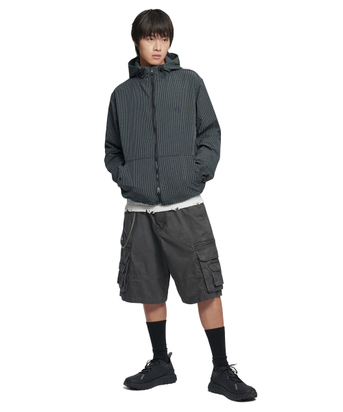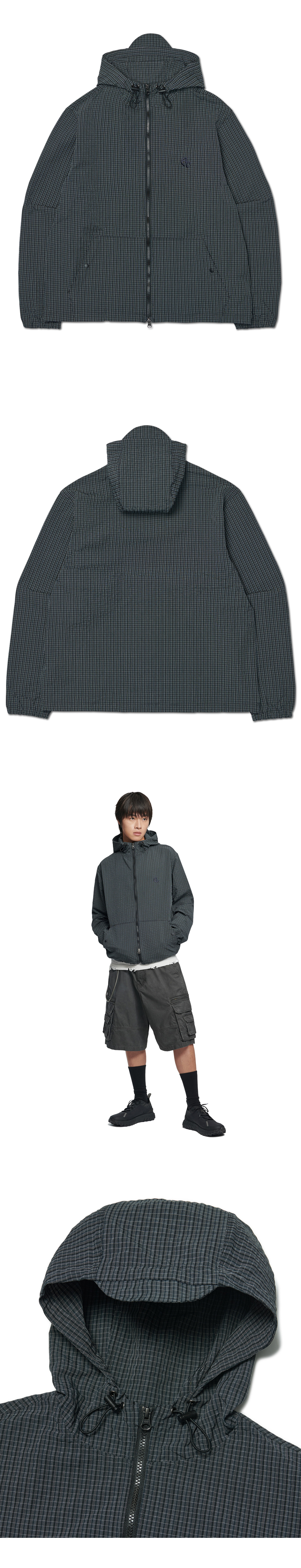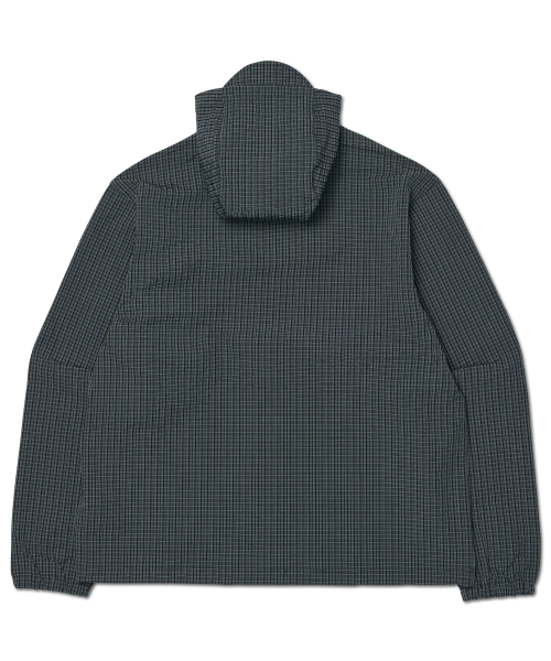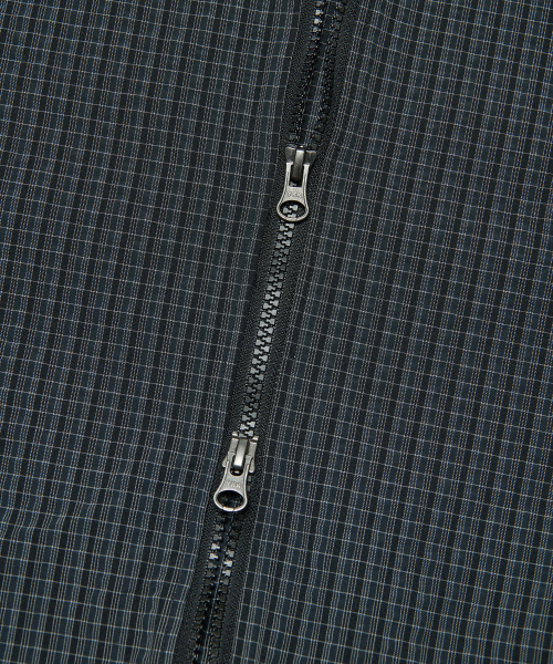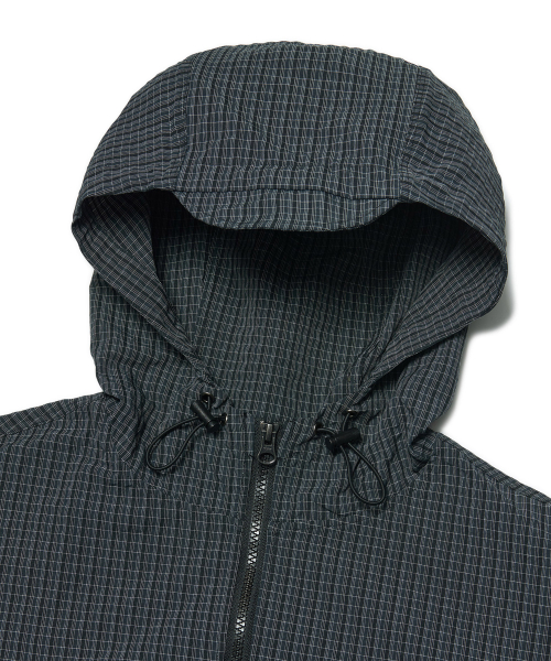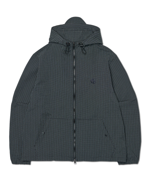 HOODED CHECK WIND JACKET - NAVY