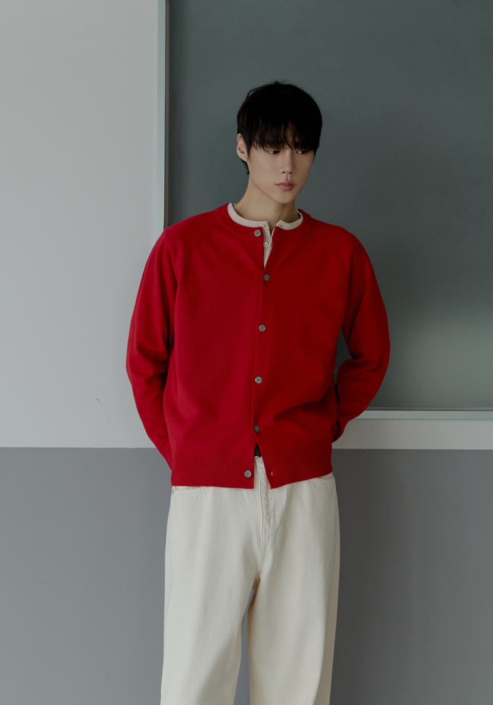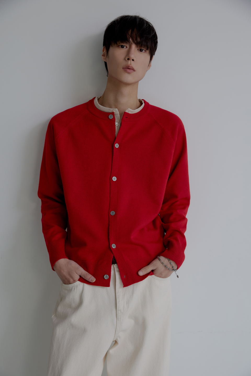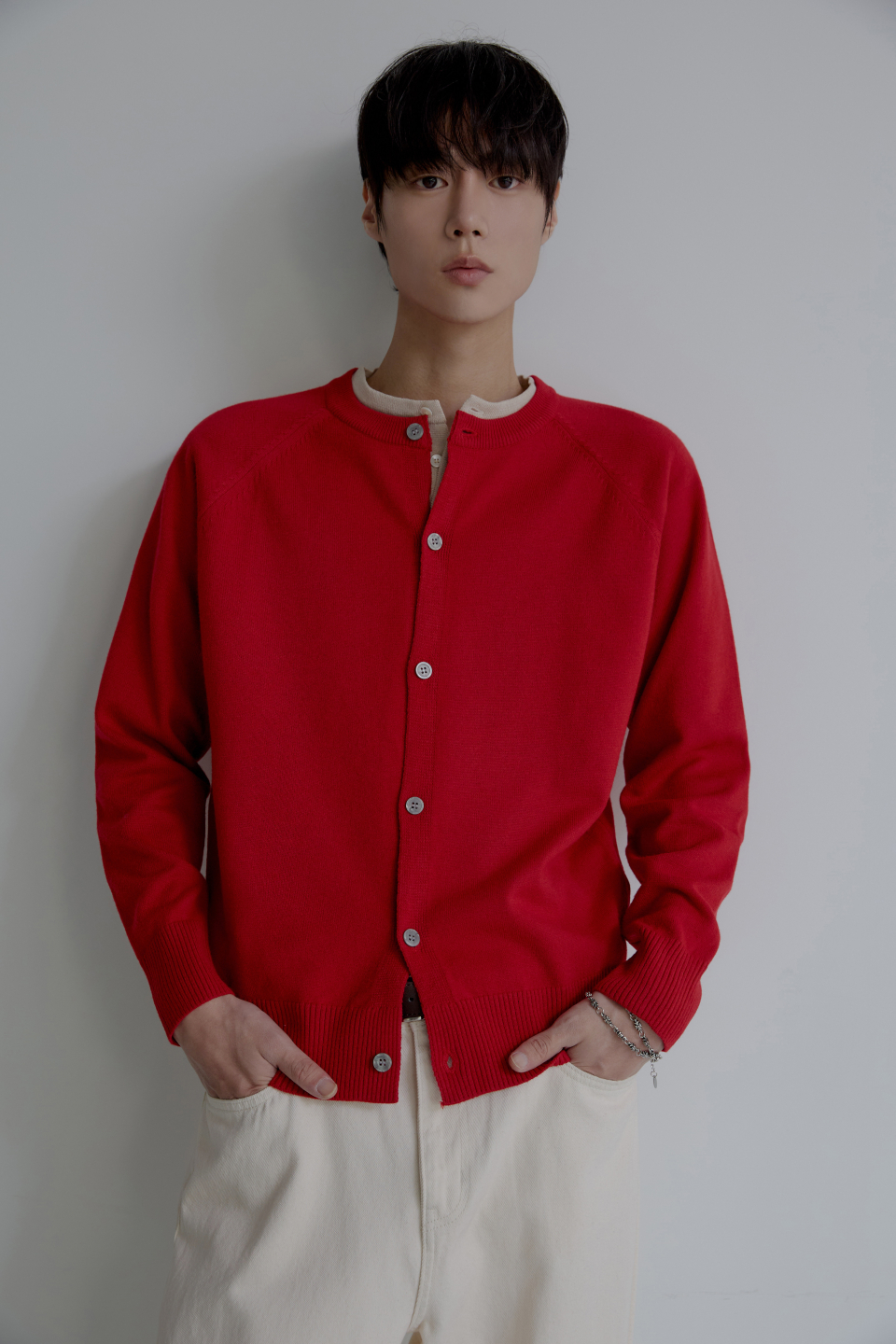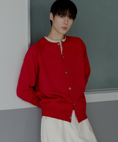 라글란 헤라시 라운드 크롭 가디건 [레드]