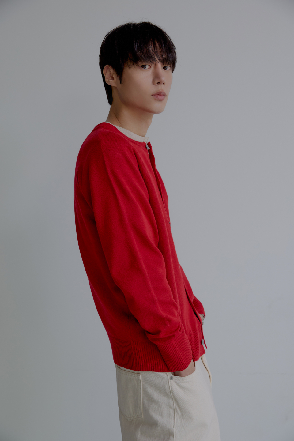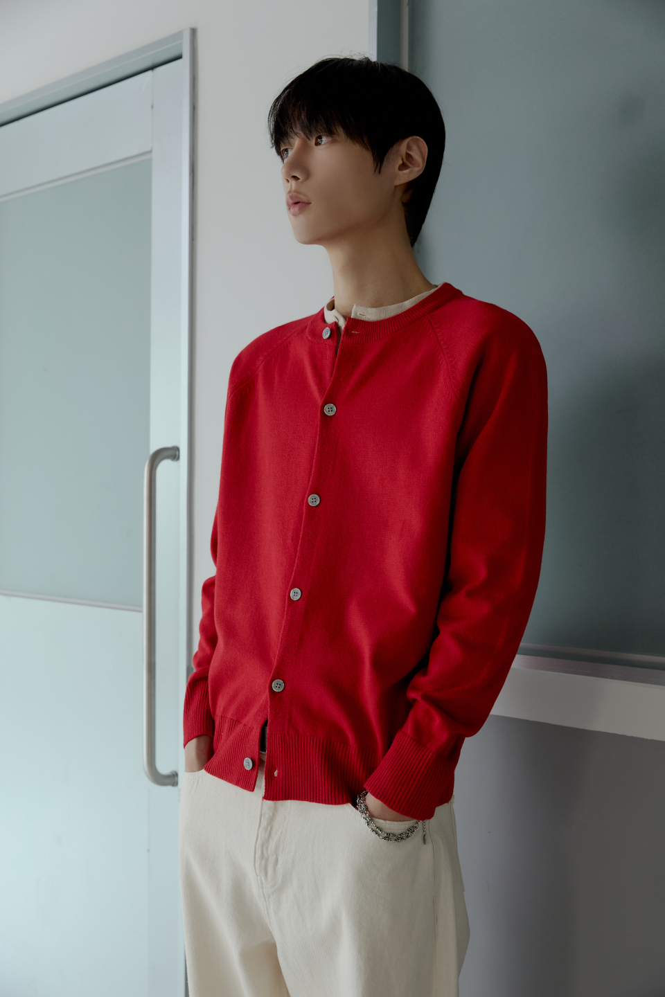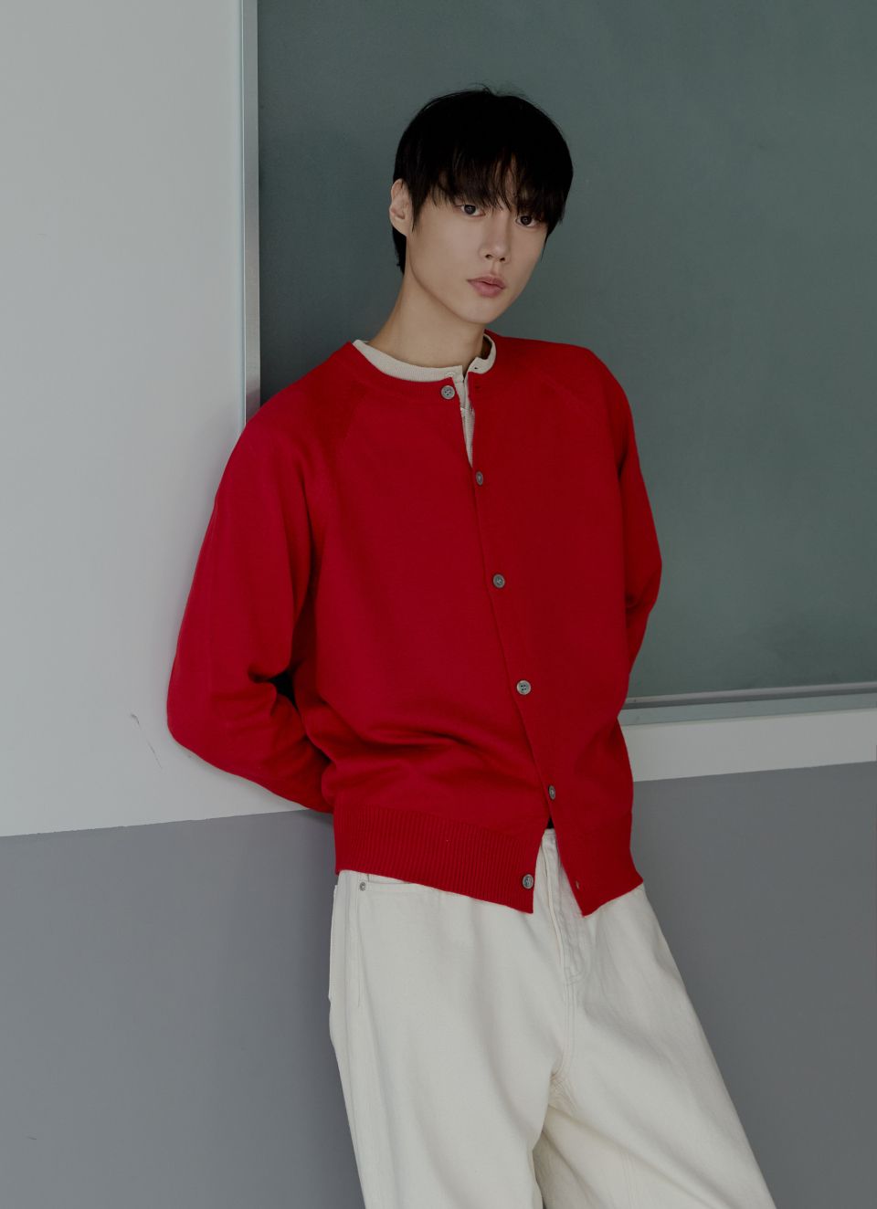 라글란 헤라시 라운드 크롭 가디건 [레드]