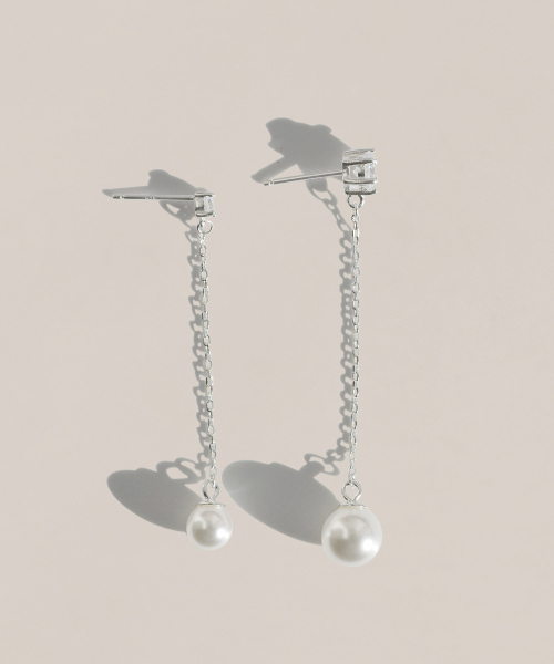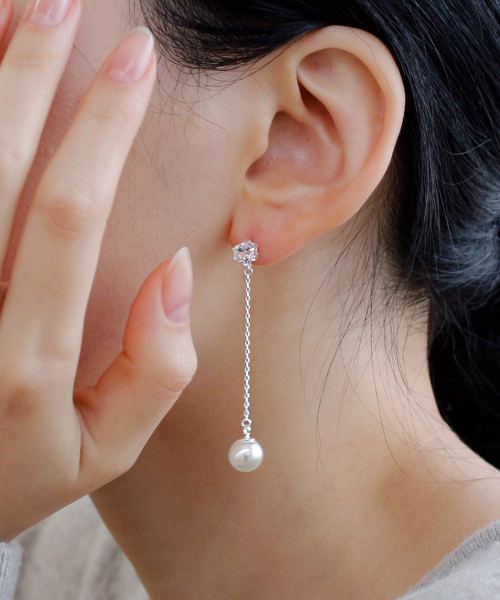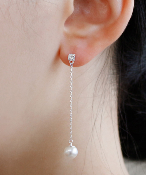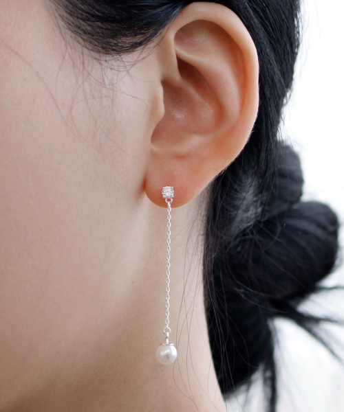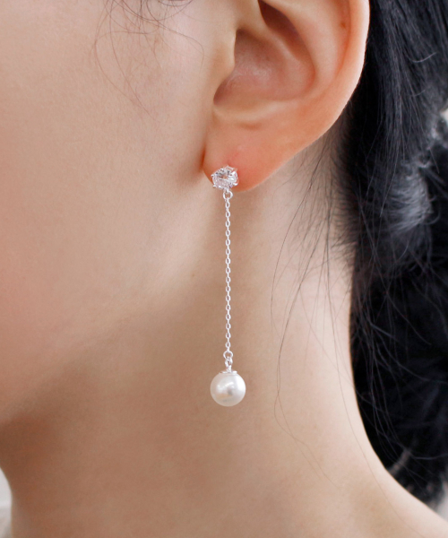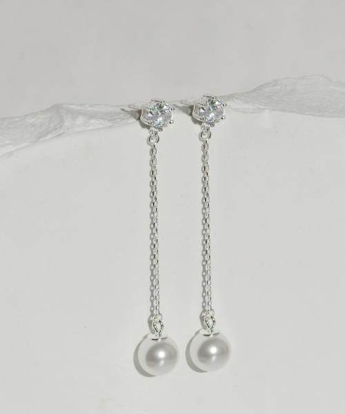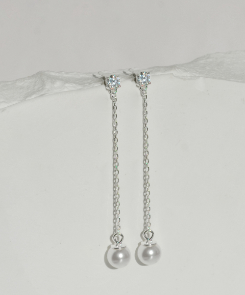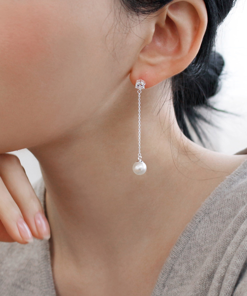 925실버 스와로브스키 진주 큐빅 드롭 귀걸이/ 발렌틴