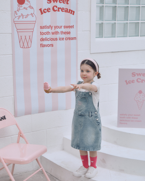 캔디 스트라이프 티(핑크)+러브팝 멜빵 스커트 SET