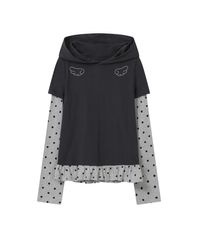 엔젤 슬림핏 레이어드 후드 티셔츠 [도트 차콜]