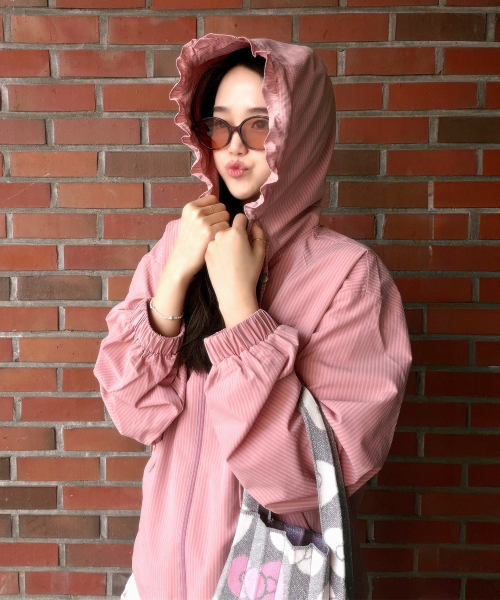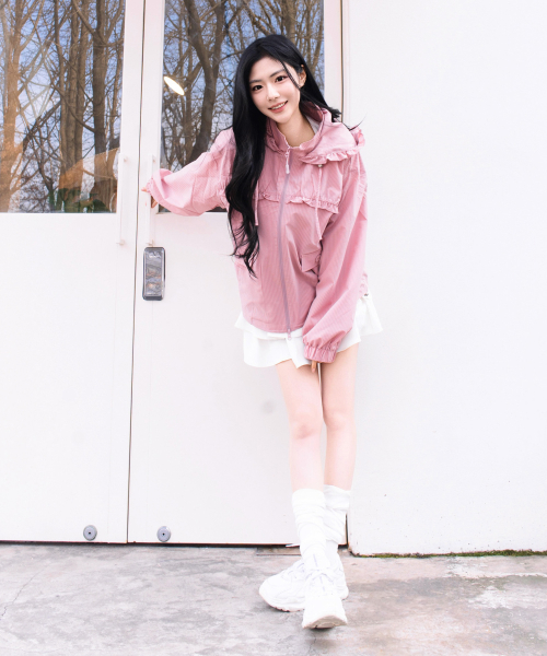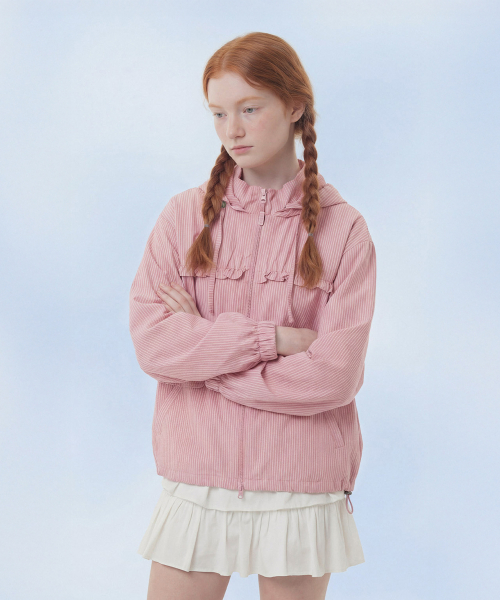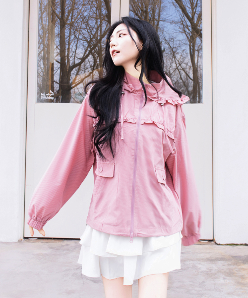 Check Frill Windbreaker Jacket_Pink