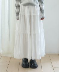 테슬 프릴 캉캉 롱스커트 [아이보리]