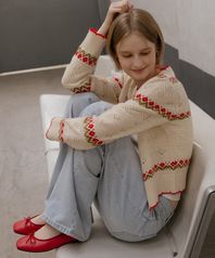 Flower jacquard cardigan [TISP06CD05]_Oat beige