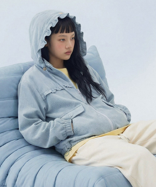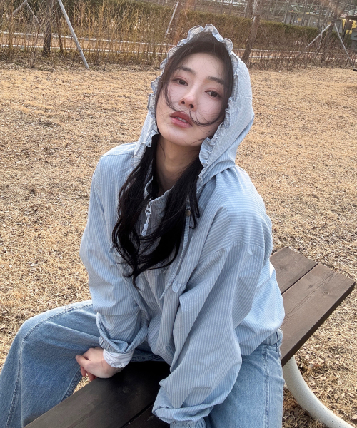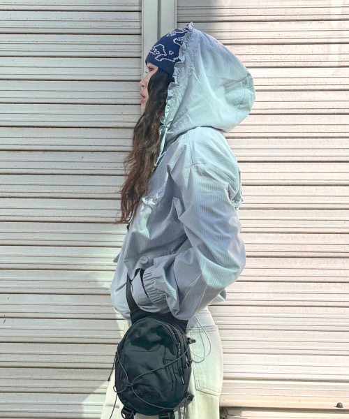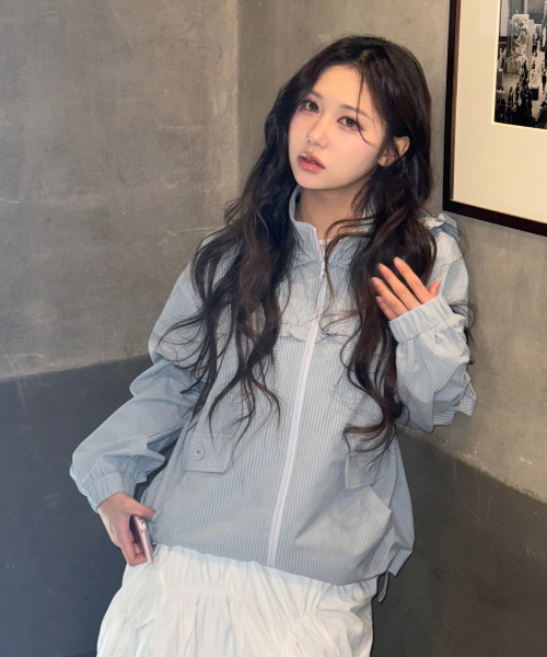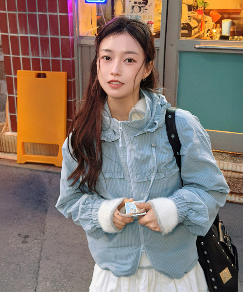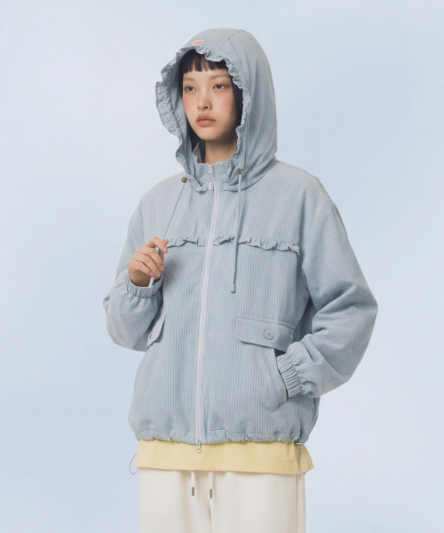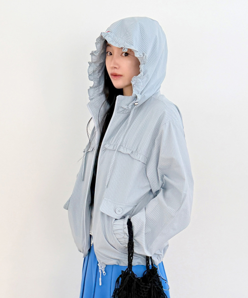 Check Frill Windbreaker Jacket_Sky Blue