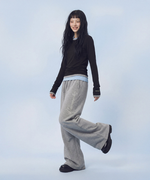 Side Letter Flare Sweatpants_Melange Gray