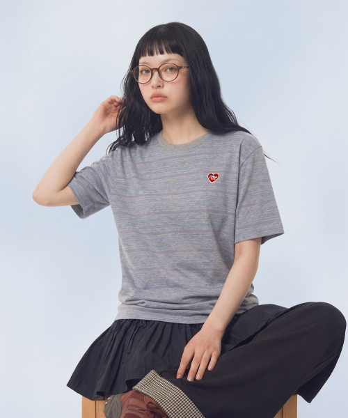 Daily Cotton Stripe T-Shirt_Melange Gray