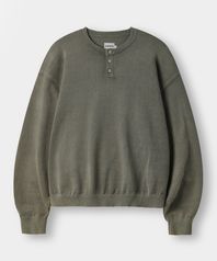데일리 워셔블 피그먼트 헨리넥 라운드 니트_카키