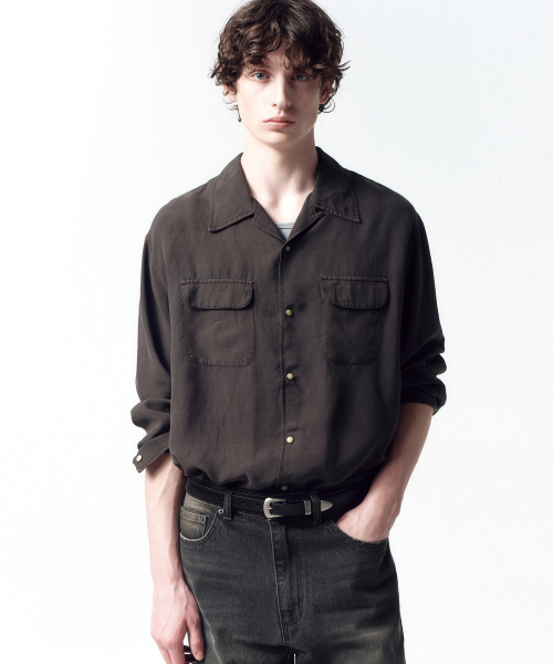 텐셀 개버딘 오픈칼라 셔츠 DARK BROWN